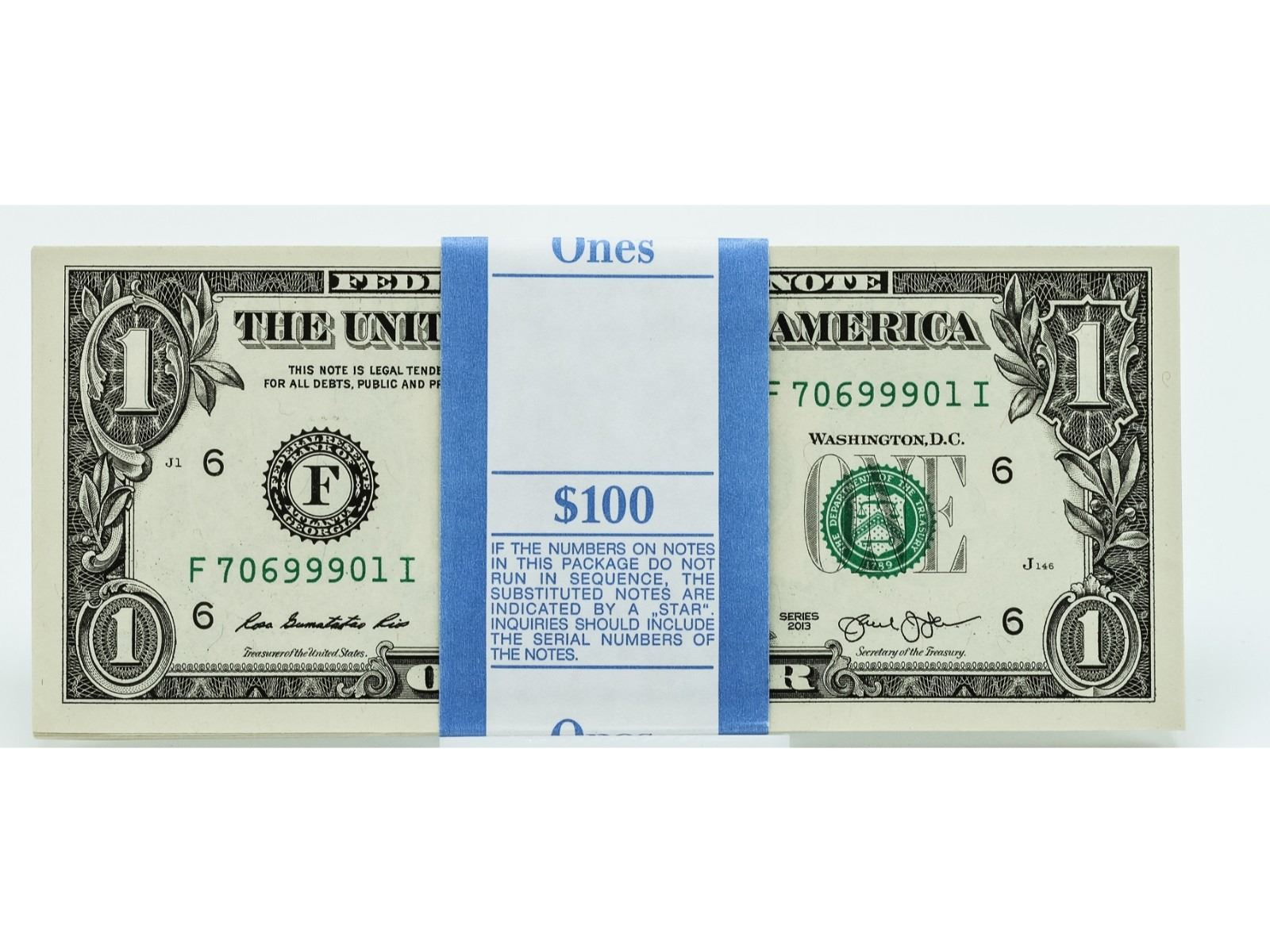Lot of 100 Consecutive 2013 $1 Federal Reserve Notes. Serial Numbers F70699901 I thru F70700000 I. Last note has minor folds in it. See image 2.