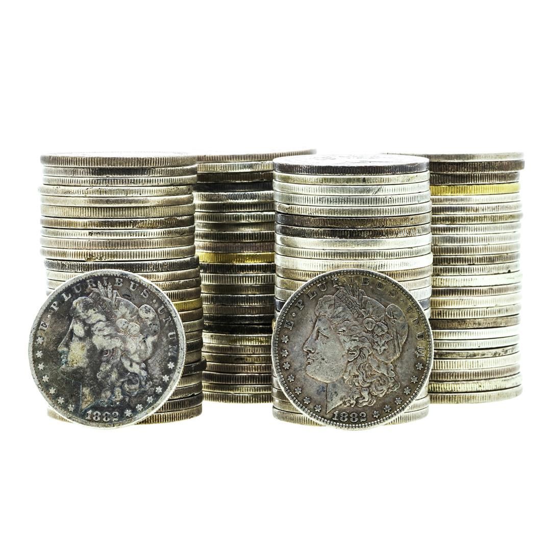 One Lot of (100) Pre-1921 $1 Morgan Silver Dollar Coins.