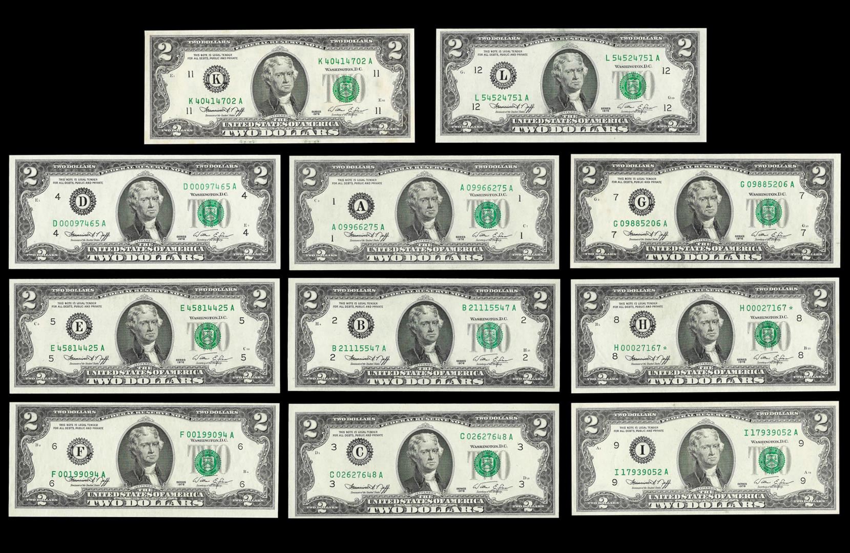 One Lot of (11) 1976 $2 Federal Reserve Notes.