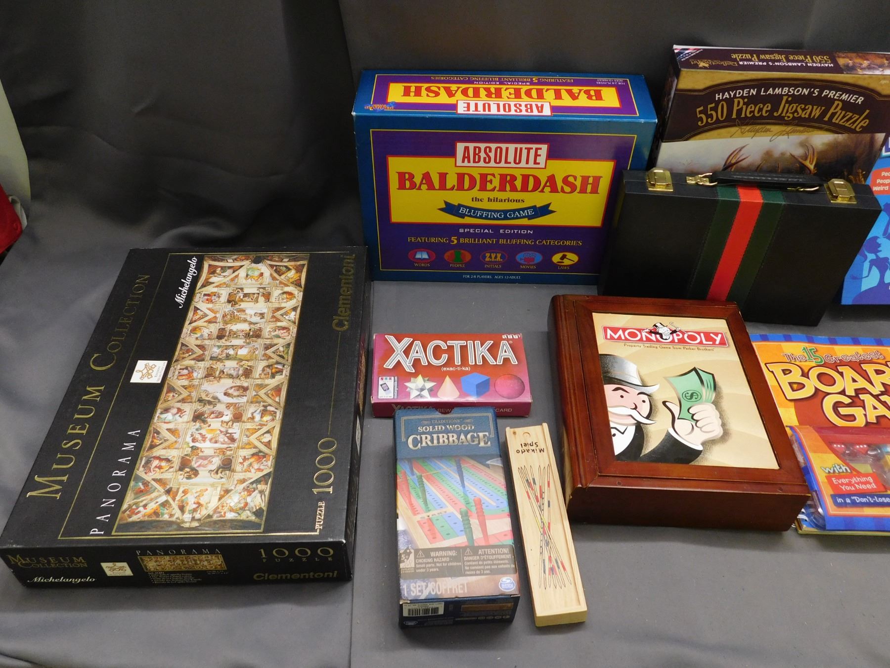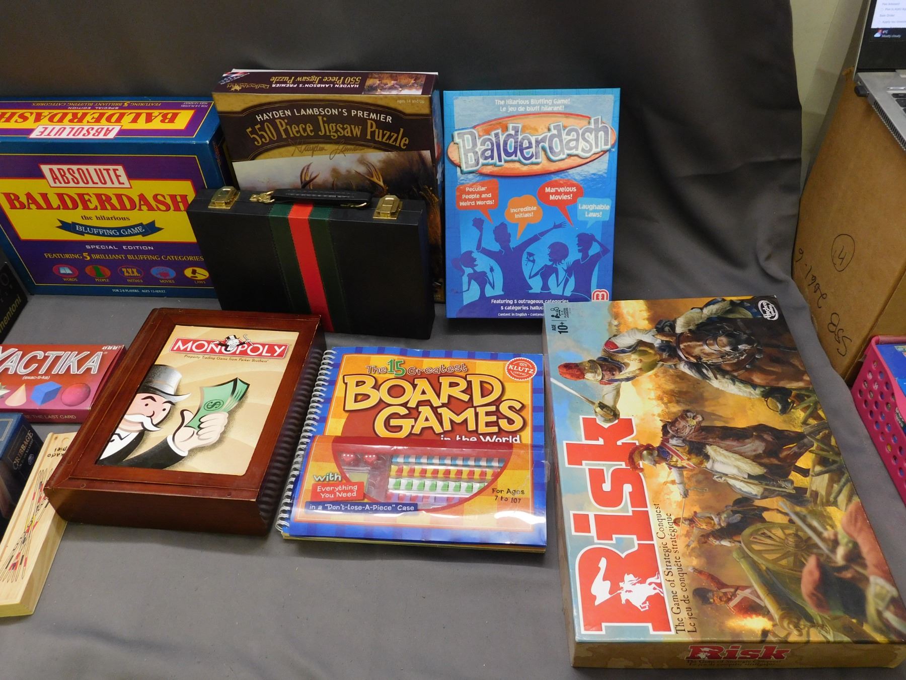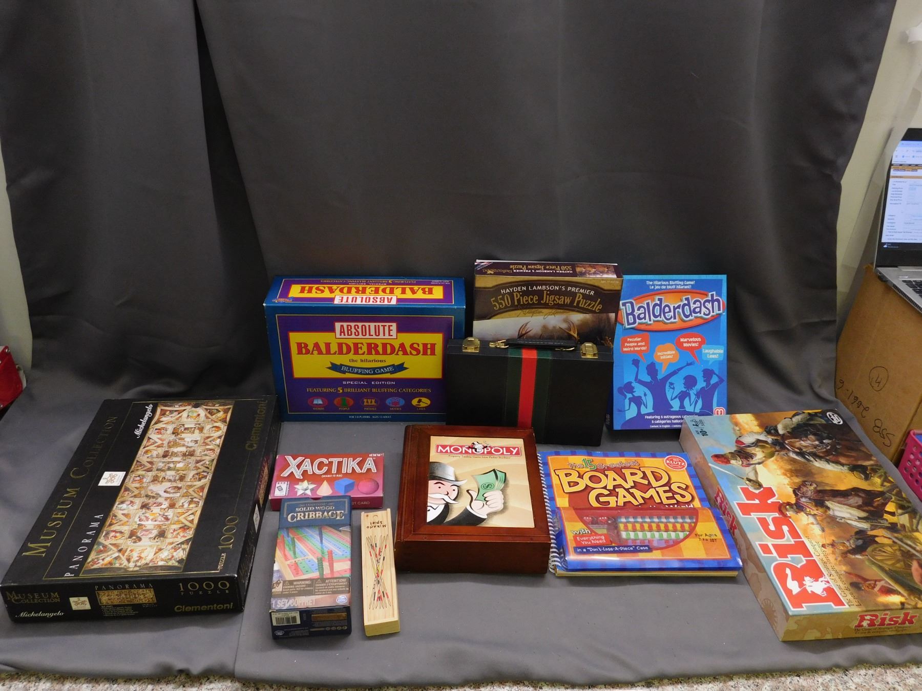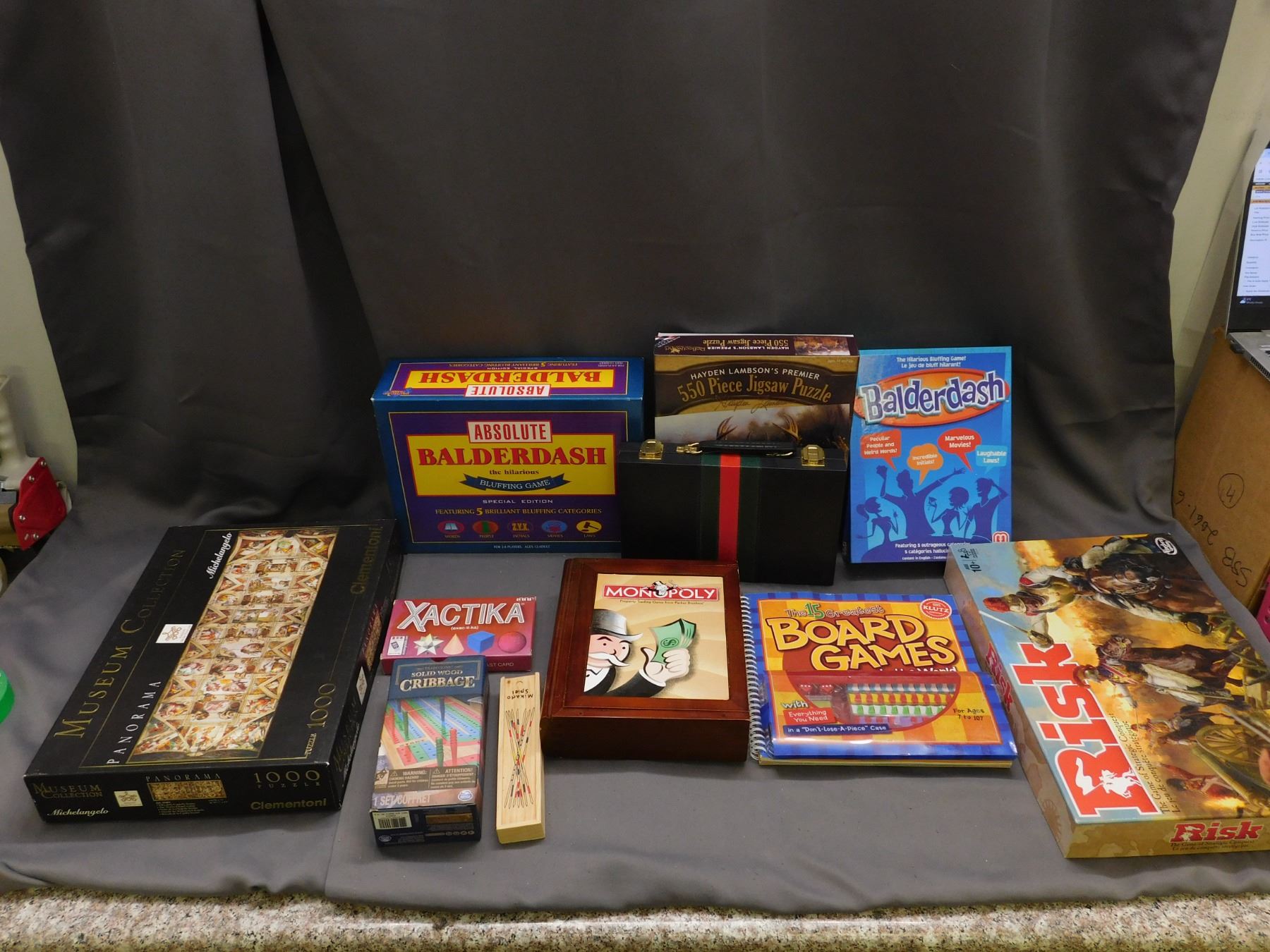Lot of 11 Board Games and Puzzles Monopoly, RISK, Balderdash, Cribbage, etc