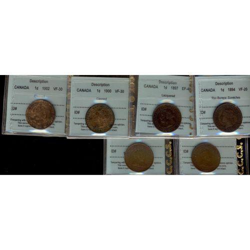 Lot of 11 CCCS graded Large Cents. All pieces have small problems; cleaned, scratched, planchet flaw or bent. 1858 VG-8, 1886 Obv#2 VF-30, 1888 Doubled 8 VF-30, 1891 SDSL Obv#3 F-12, 1892 Obv#4 EF-40, 1894 VF-20, 1897 EF-45, 1900 VF-30, 1902 VF-30, 1903 EF-45, 1904 EF-45
