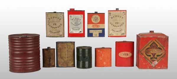Description Includes nine Dupont tins. Condition (Excellent). Size Largest: 7" T.