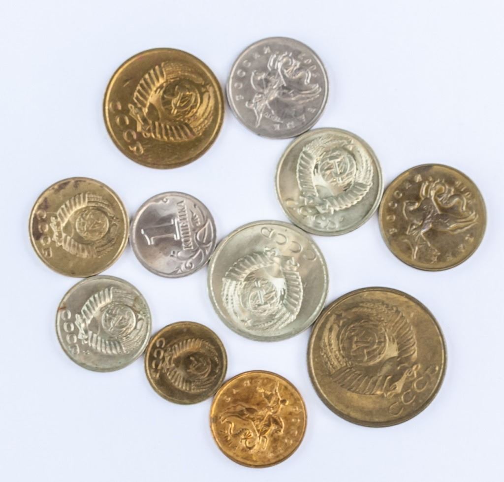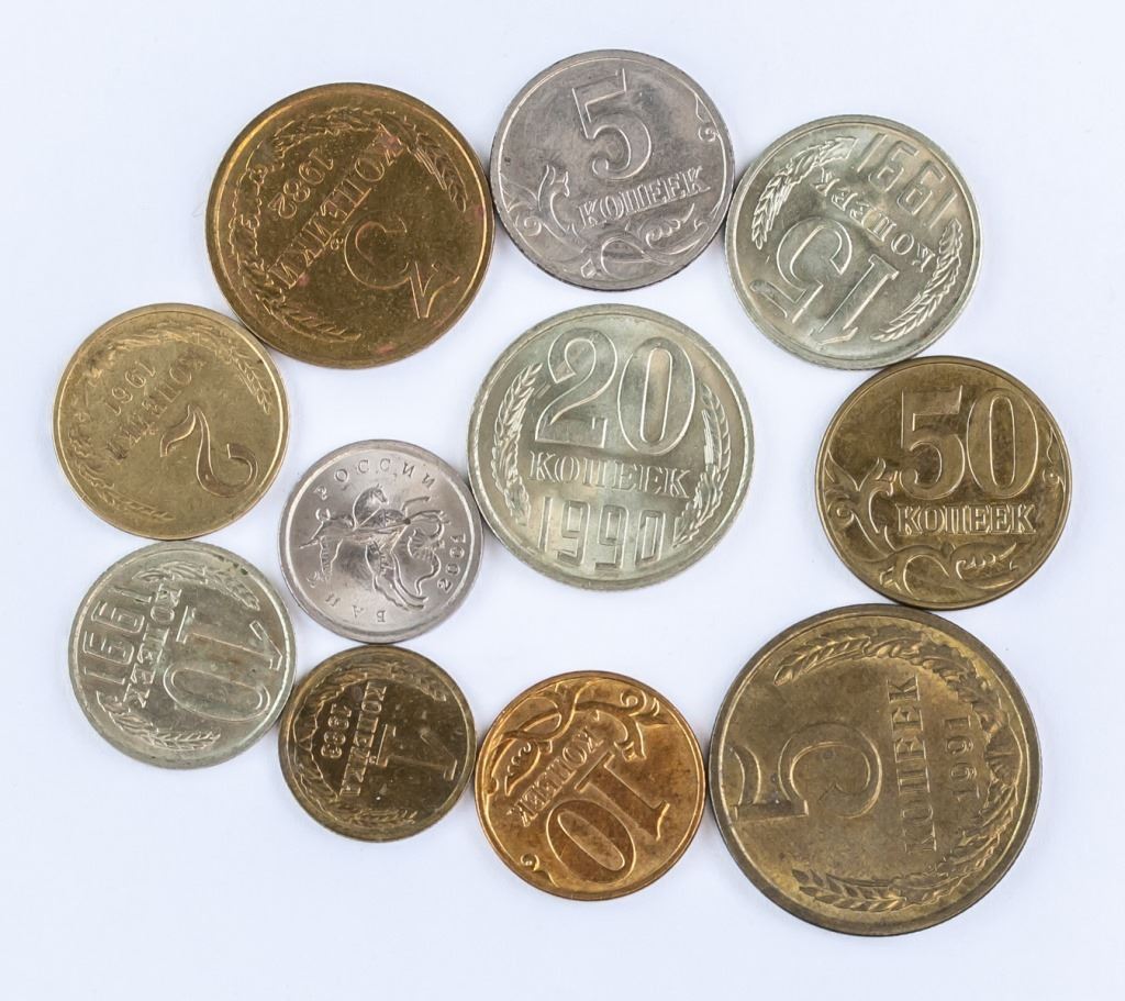 Lot of 11 Russian and USSR coins. Of various denominations.