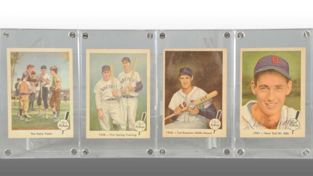 Includes Tops #1 1957 Williams card, not graded and off centered with some wear at corners. Other ten cards are from the 1959 Ted Williams Baseball's Greatest Set which includes cards numbered 1, 3, 4, 11, 17, 52, 57, 58, 65 and 69, all ungraded. All are in plastic holders. Condition (Good - Very Good).