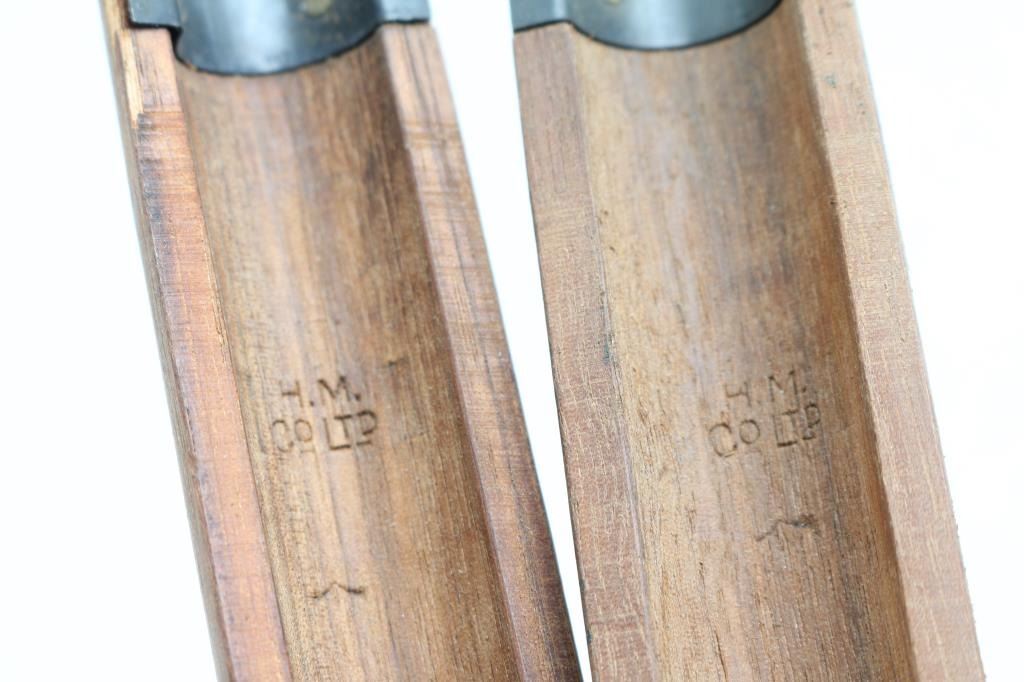 VERY GOOD: All original parts; none to 30% original finish; original metal surfaces smooth with all edges sharp; clear lettering, numerals and design on metal; wood slightly scratched or