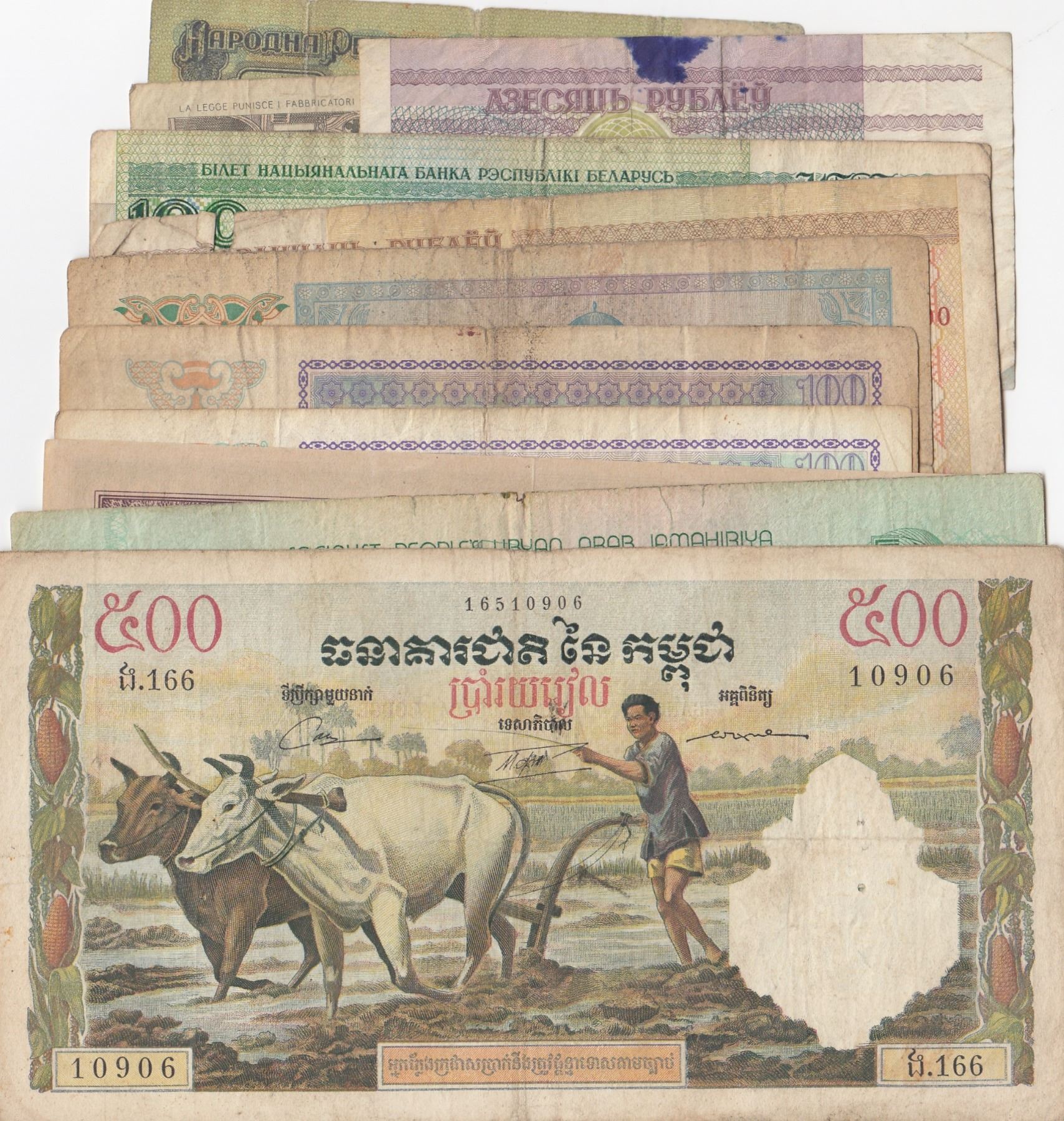 Lot of 11 banknotes; Between FINE and XF conditionbr/Italy, 100 Lire; Cambodia, 500 Riels; Bulgaria,