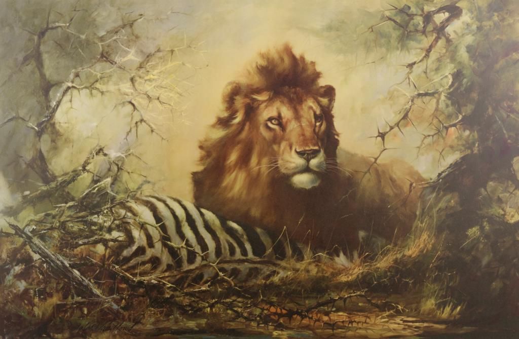Lot of 11 color prints of big game and wildlife animals including works by artists Bob Kuhn, O.C. Seltzer, David Sheperd and Douglas Van Howd. Est.: $100-$300.
