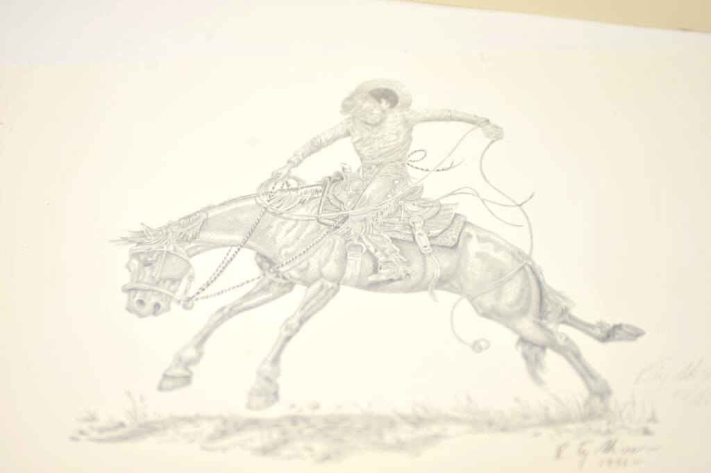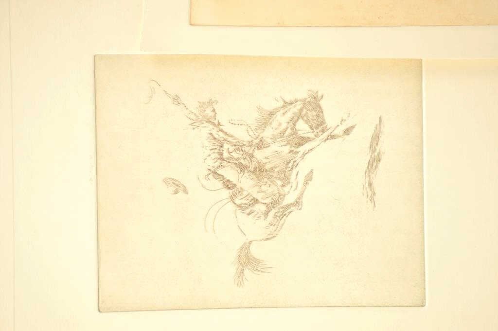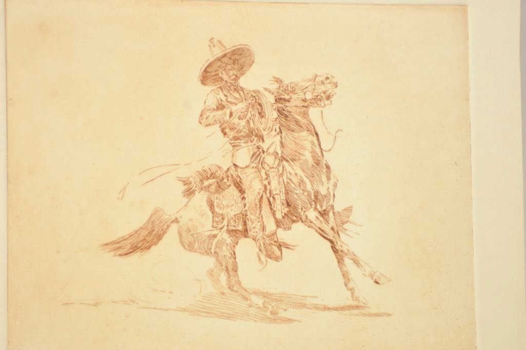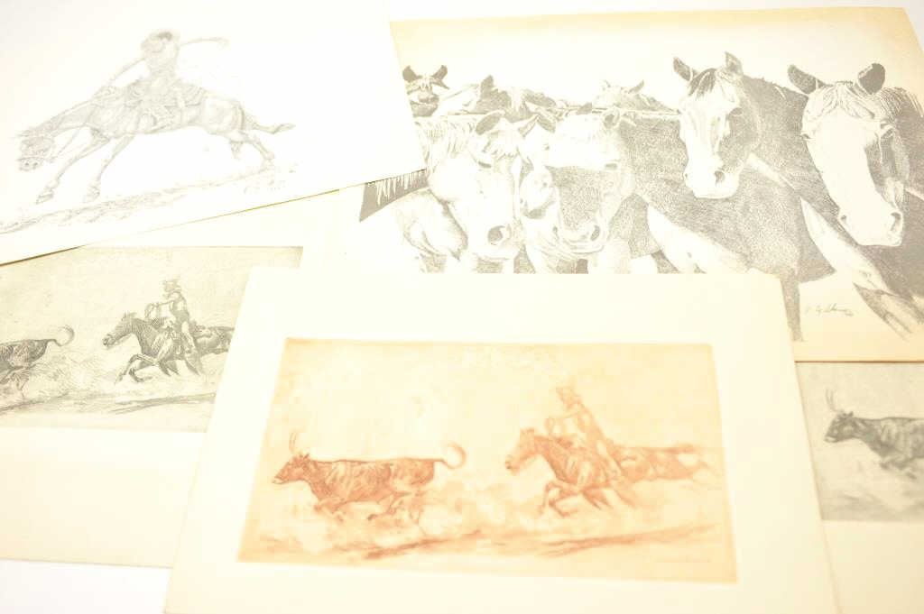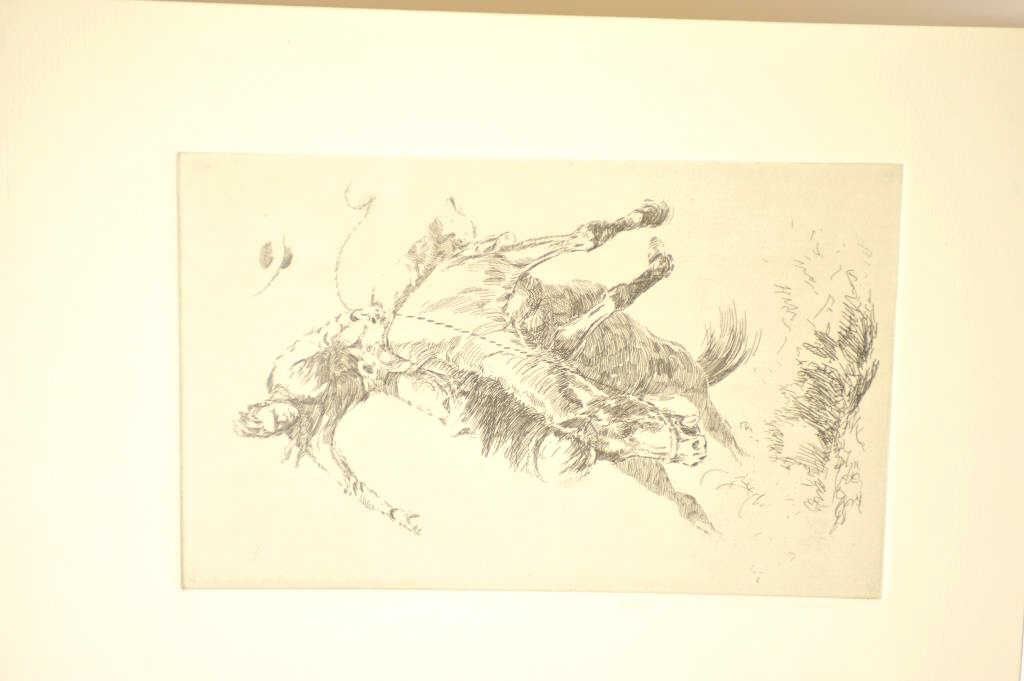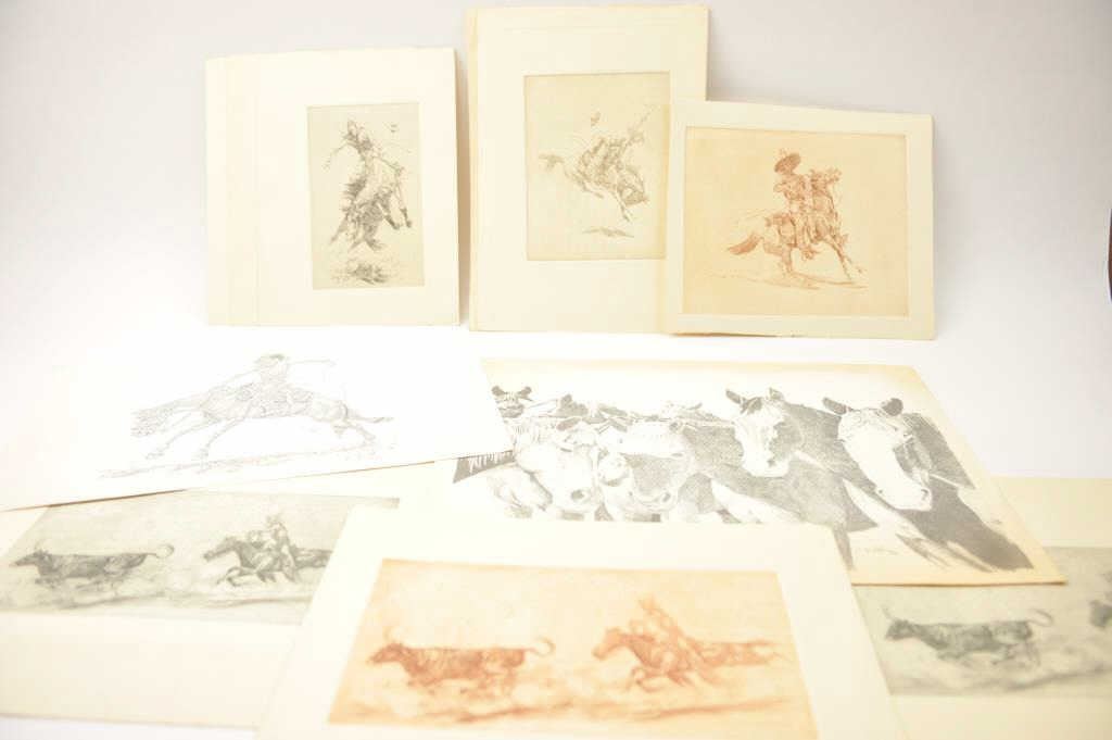 Lot of 11 cowboy and western etchings by Edward Borein in various sizes on heavy rag paper. The pieces are signed on the block in good to very good overall condition by the noted Western artist. Est.: $300-$600.