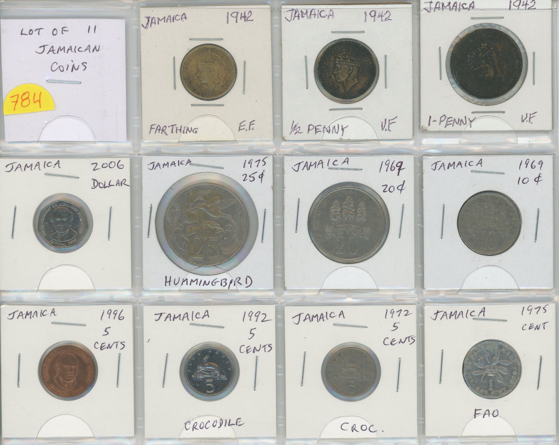Lot of 11 different coins from Jamaica including 3 from 1942.