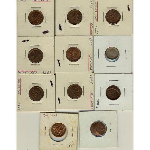 Lot of 11 modern error and variety 1¢. Should be viewed.