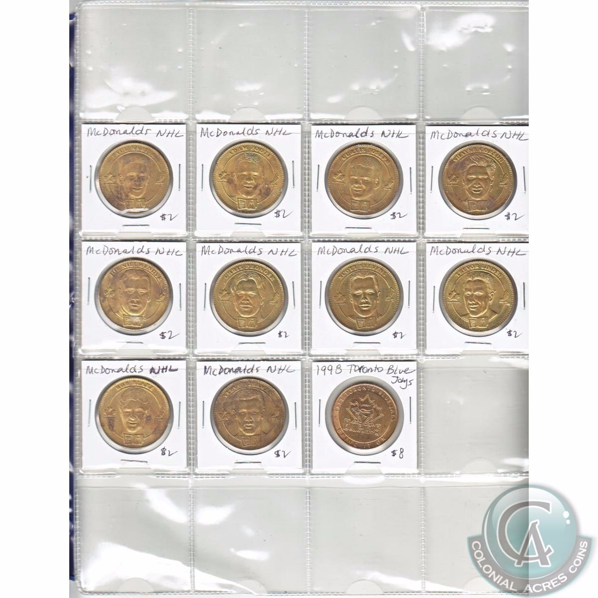 Lot of 11x McDonalds NHL Tokens with Bonus 1998 Toronto Blue Jays Token. Each hockey coin features the following players: Paul Kariya, Adam Foota, Curtis Joseph, Shayne Corson, Joe Nieuwendyk, Chris Pronger, , Scott Stevens, Trevor Linden, Rob Blake and Steven Yzerman. (11pcs).