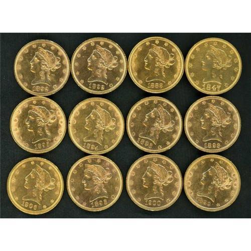 Lot of 12 $10 Liberty Eagles 1847-O - 1906-D RAW VF-BU