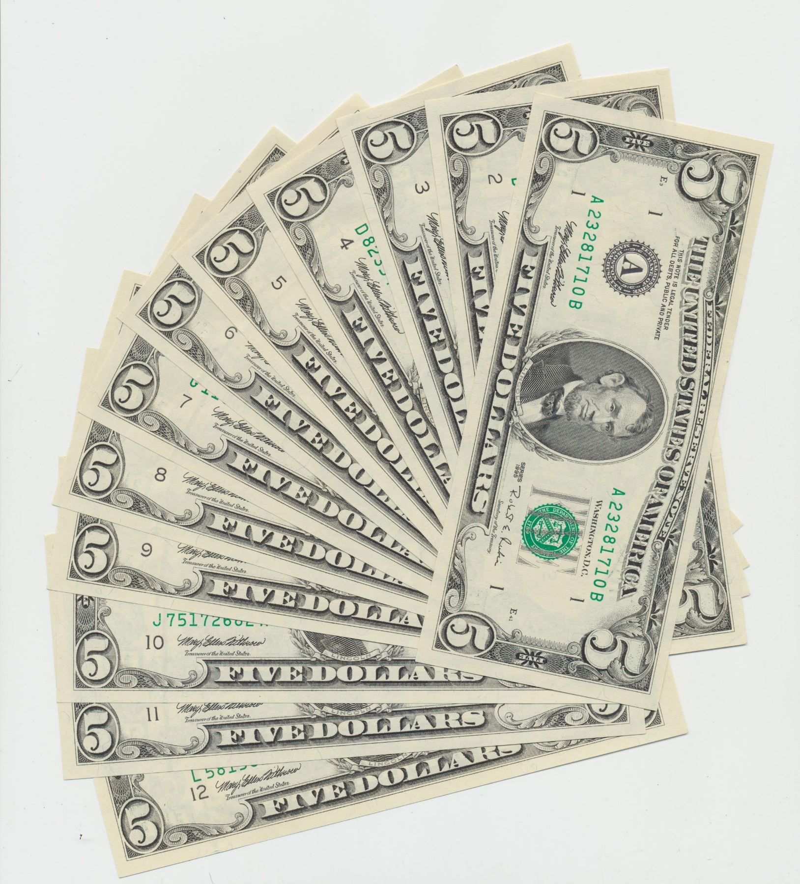 One (Lot of 12) 1995 $5 Federal Reserve Notes District Block Set. Complete $5 Federal Reserve District Block Set. Includes one note from each of the twelve FRN districts: Boston, New York, Philadelphia, Cleveland, Richmond, Atlanta, Chicago, St. Louis, Minneapolis, Kansas City, Dallas and San Francisco.