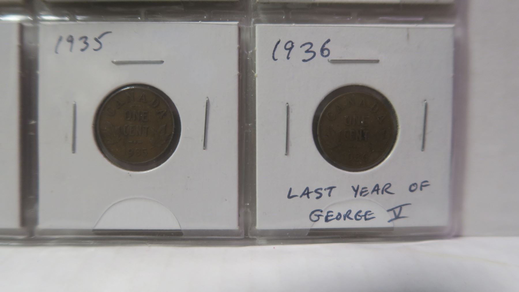 Lot of 12 Canadian George V Small Cents 1920 – 1936. Missing only the Key Dates 1922 – 1926. A nice selection.