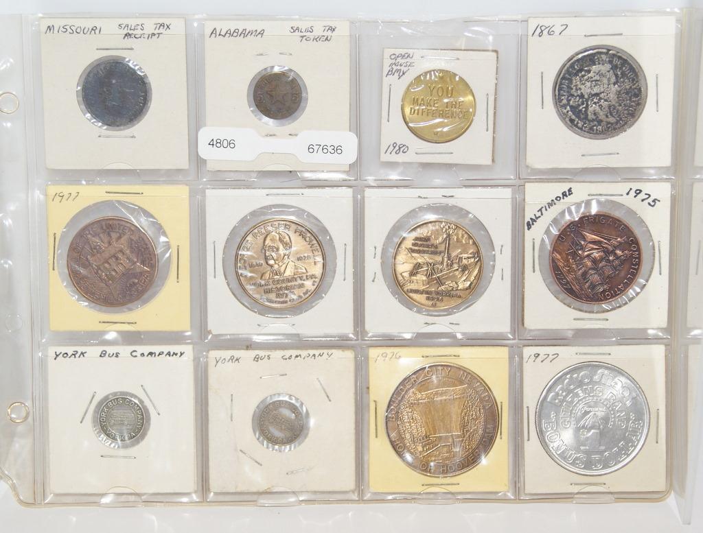 Sheet Of 12 Collectable Tokens Sold as One Lot