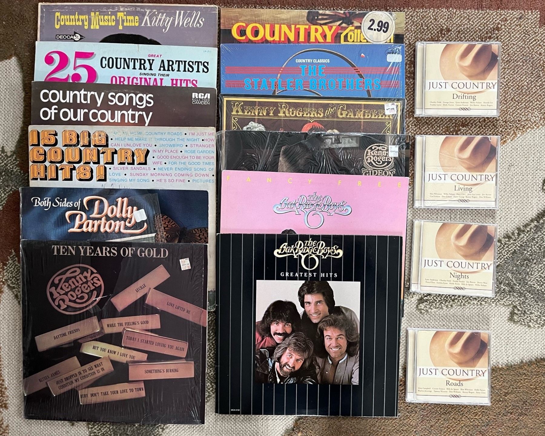 Lot of 12 Country Music LP records with 4 Country Music Compact Discs. Kenny Rogers.