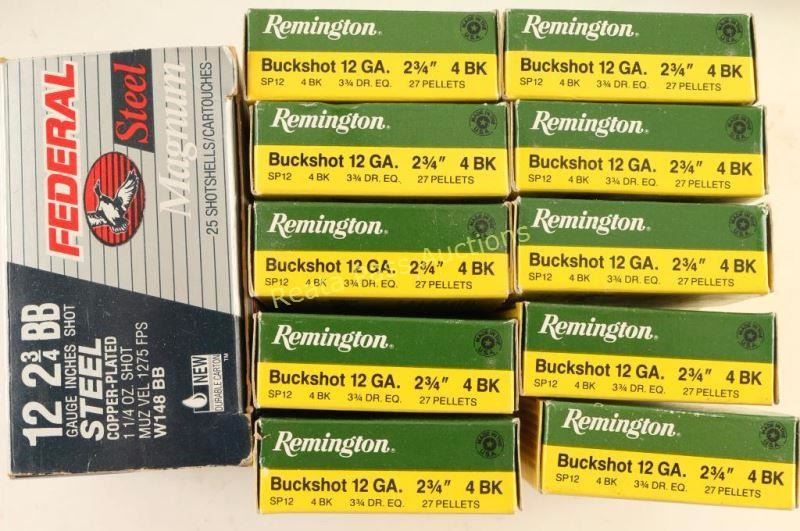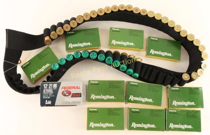 Including (10) boxes of Remington 4 buck 2 3/4", (1) box of Federal steel magnum and one bandoleer with various shells.