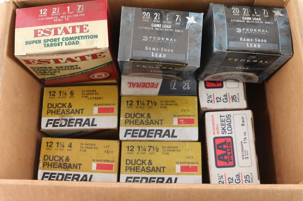 also some 20 gauge. Mixed brands, Over 200 2-3/4" shells, in factory boxes. Mix of "duck & pheasant" and skeet loads.