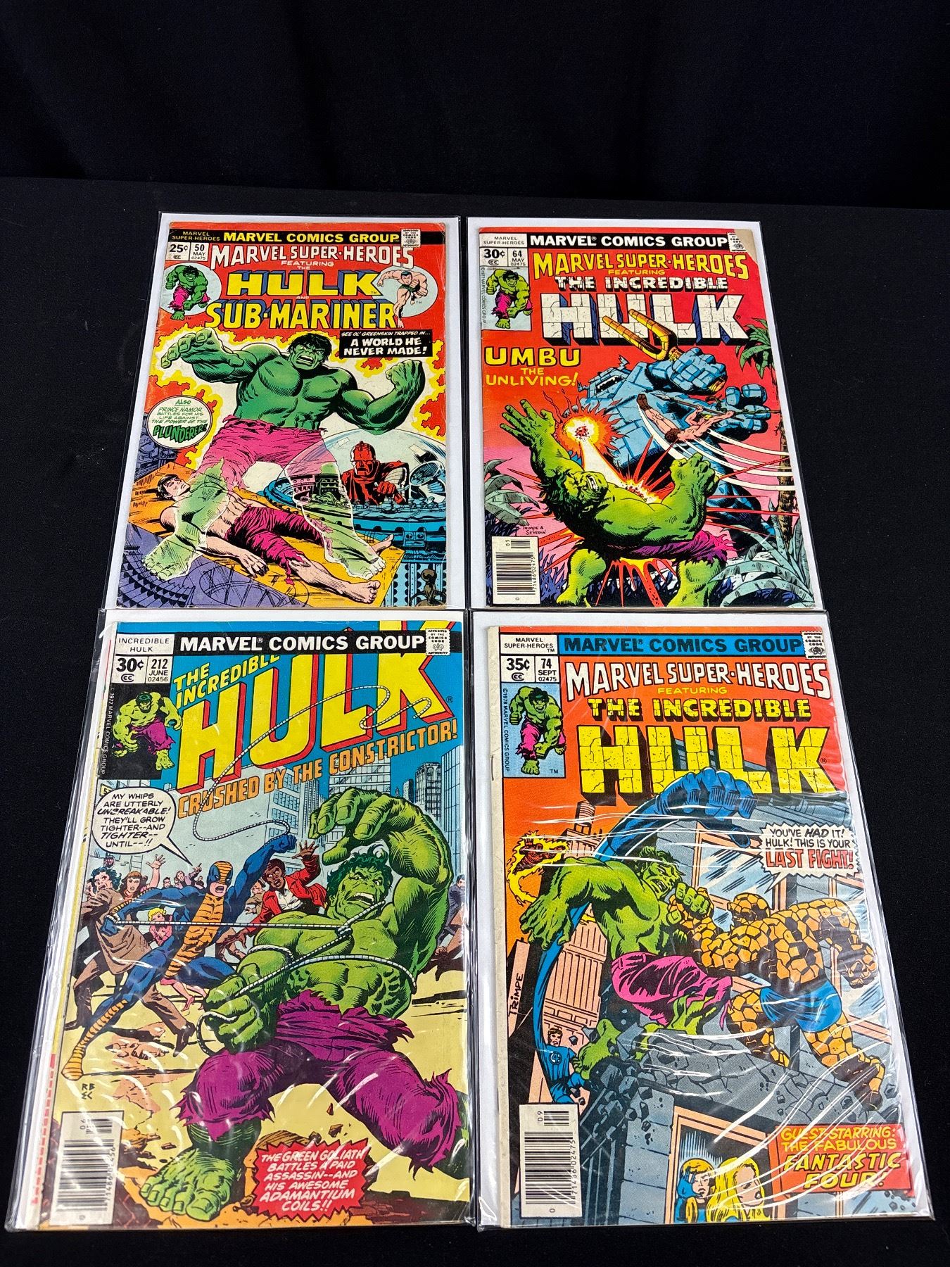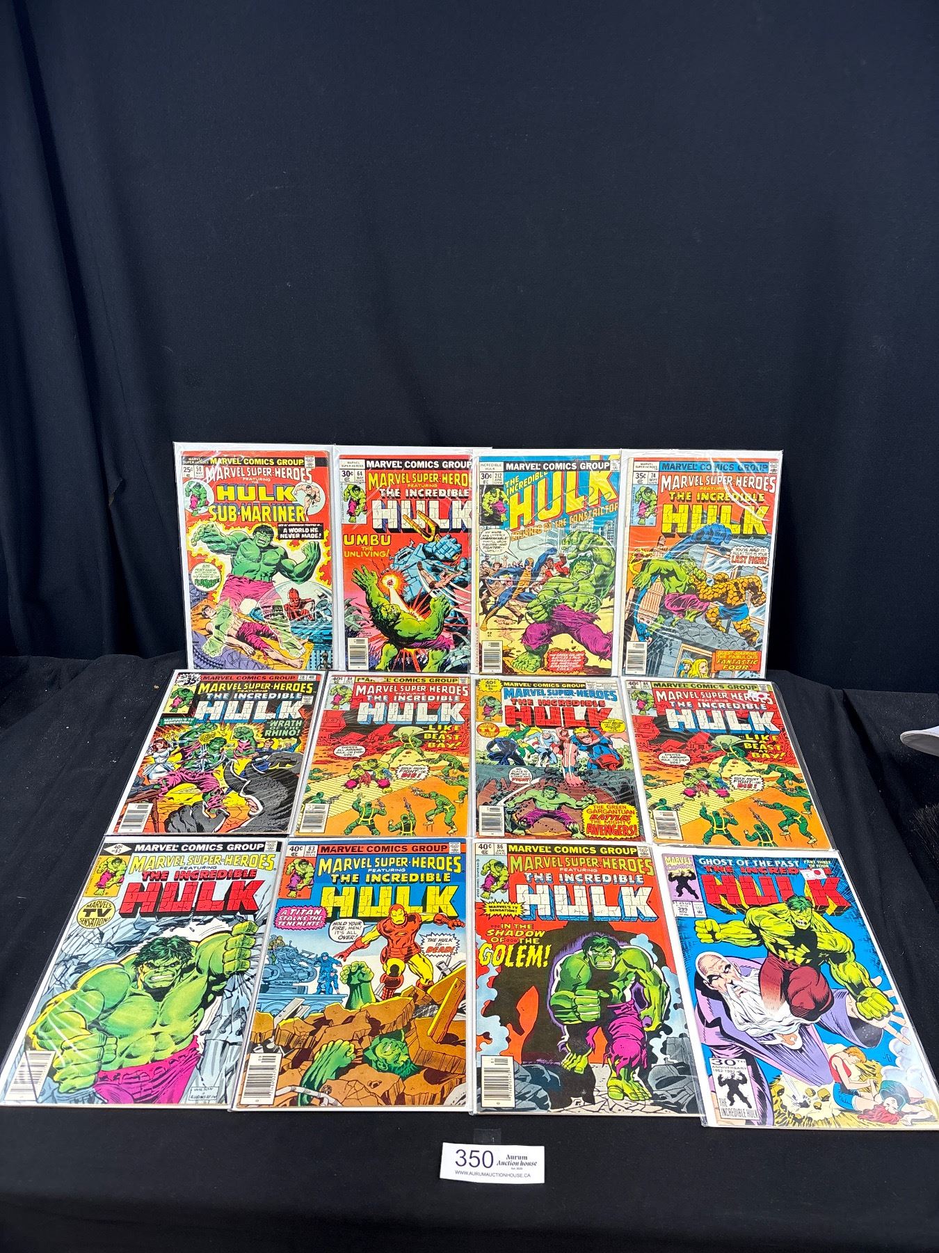 Lot of 12 Incredible Hulk Comics 25c to 40 cent on Board in Bag