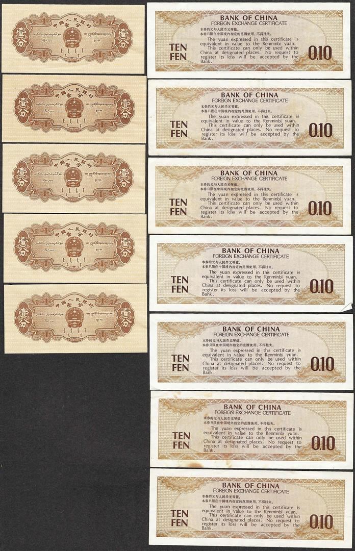 Lot of (12) Miscellaneous China One and Ten Fen Currency Notes