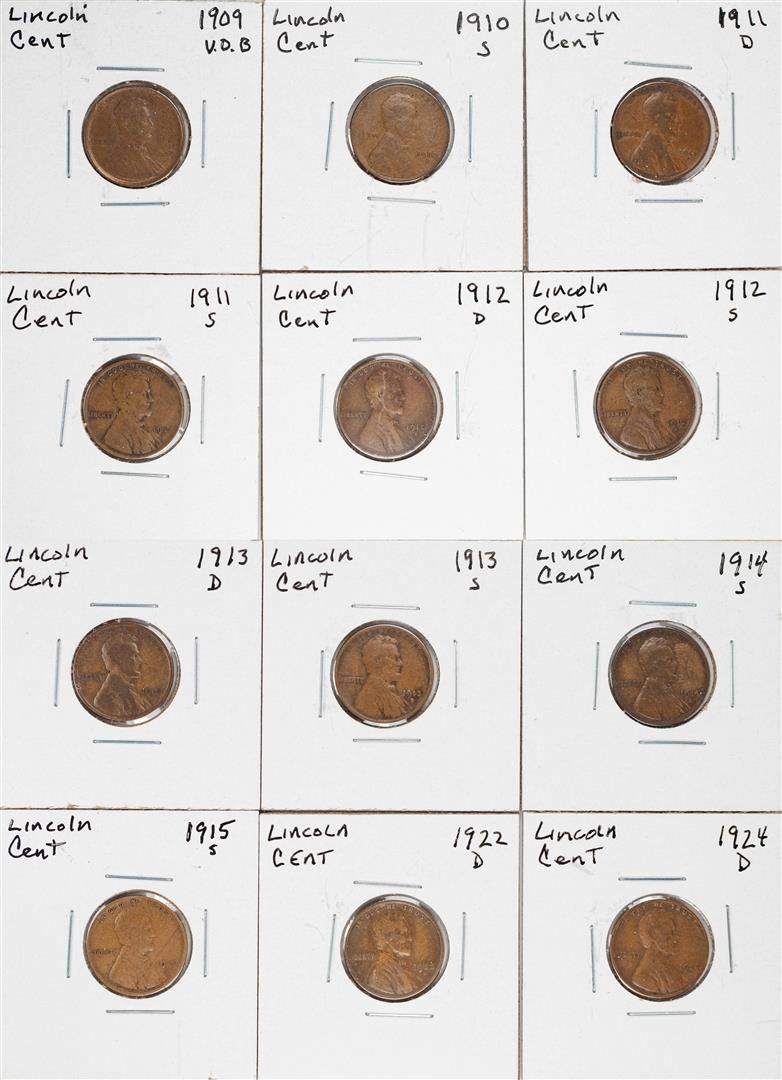 One Lot of (12) Semi Key Date Lincoln Wheat Cent Coins.