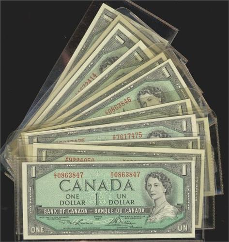 Lot of 12 notes, 1954 $1 BC-37c and 37d. All different prefix notes. Most notes are uncirculated