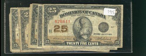 Lot of 12 shinplasters dated 1923. DC-24c and 24d, grades vary from VG to Fine.