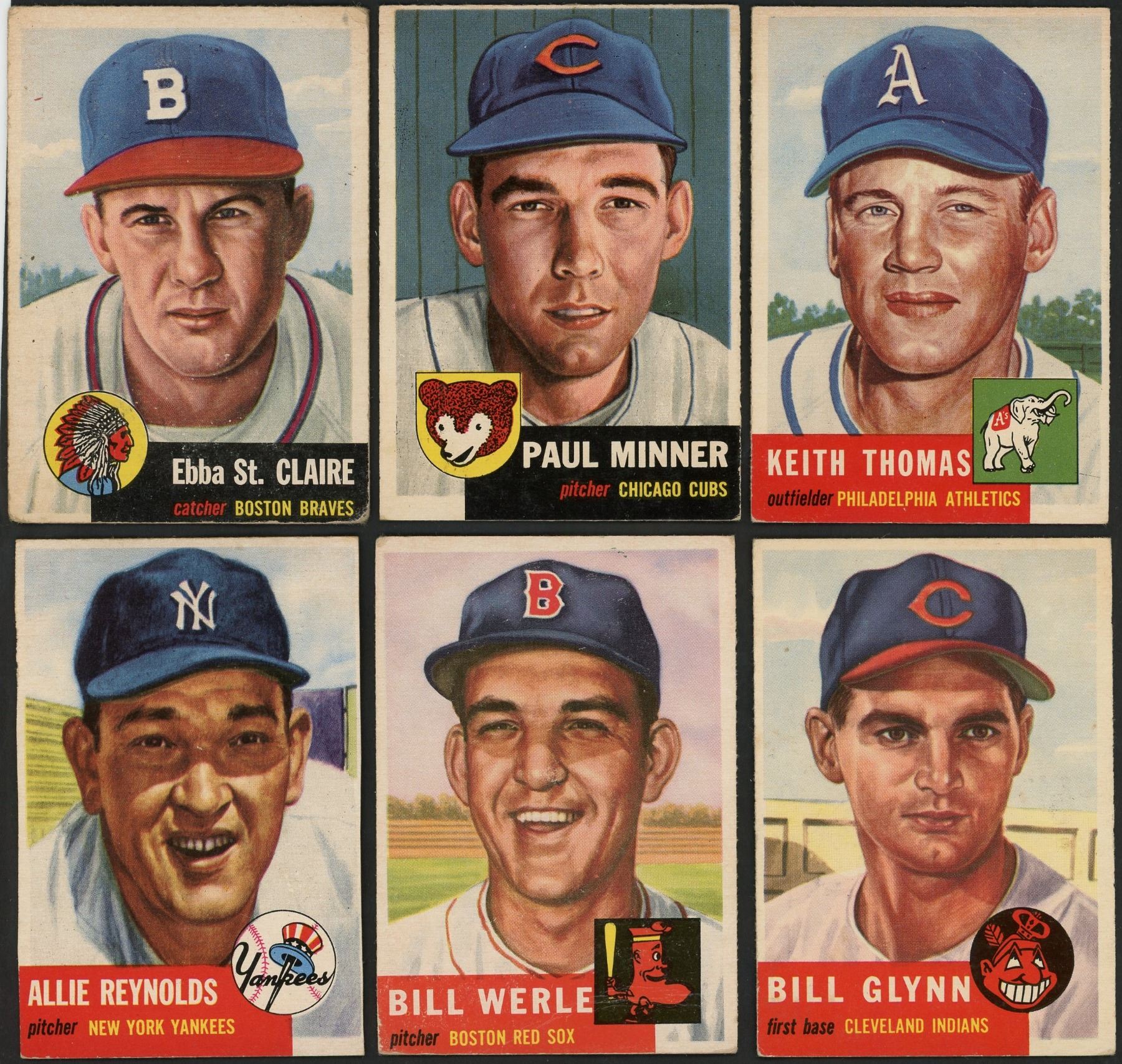 Lot of 12 different cards from the popular 1953 Topps baseball set, grading GD to VG. #141 Reynolds is trimmed. Card backs are clean!