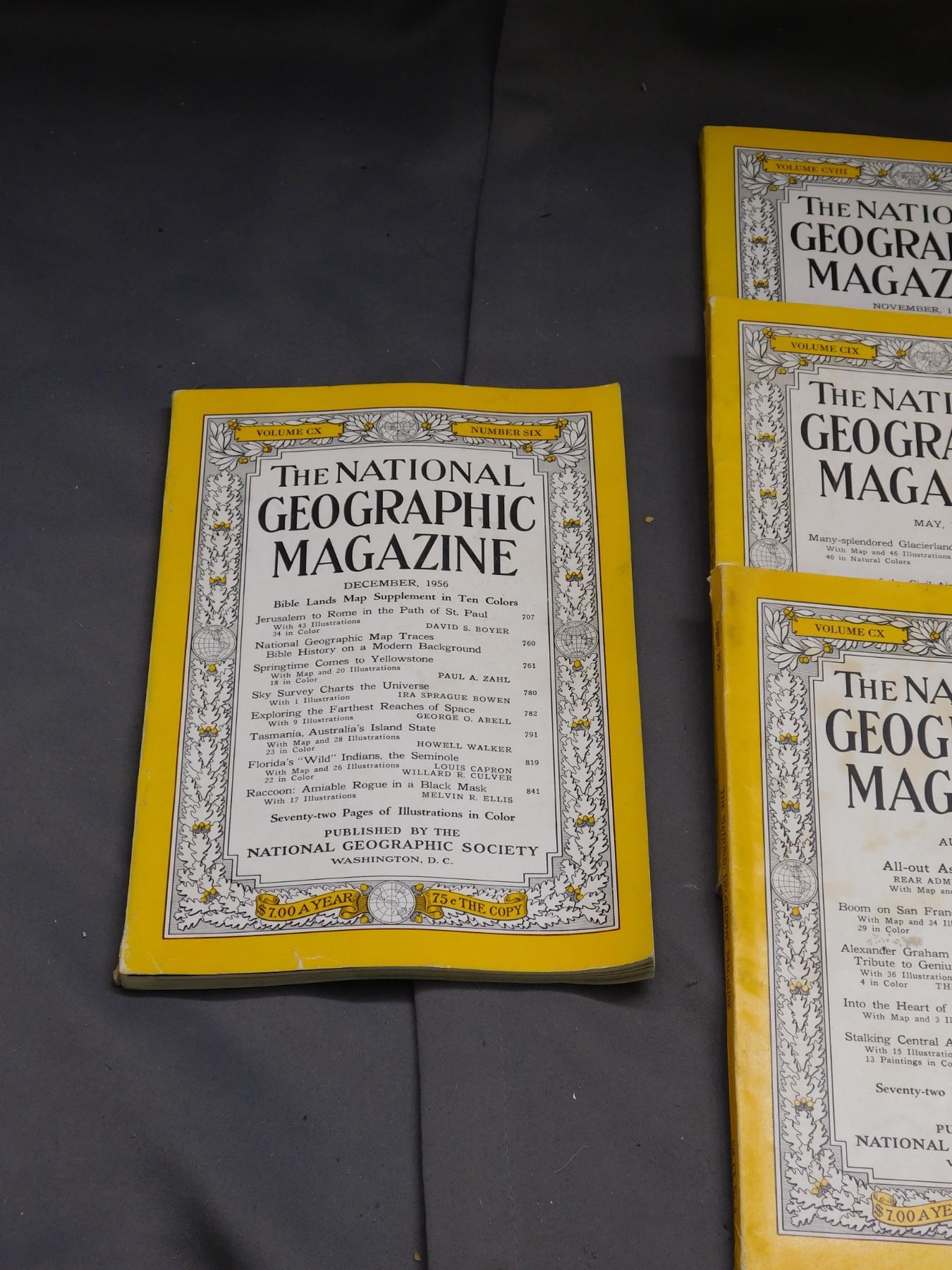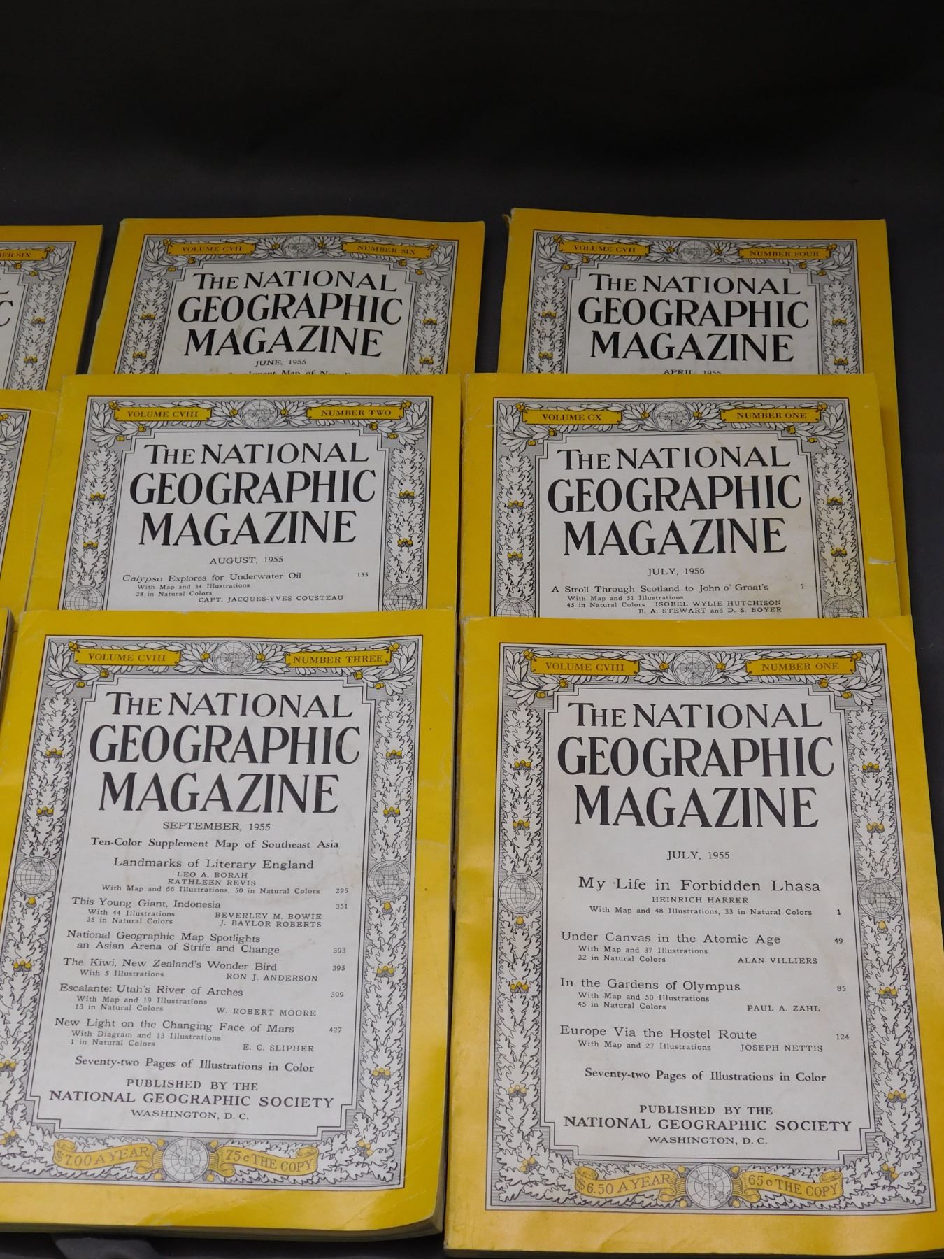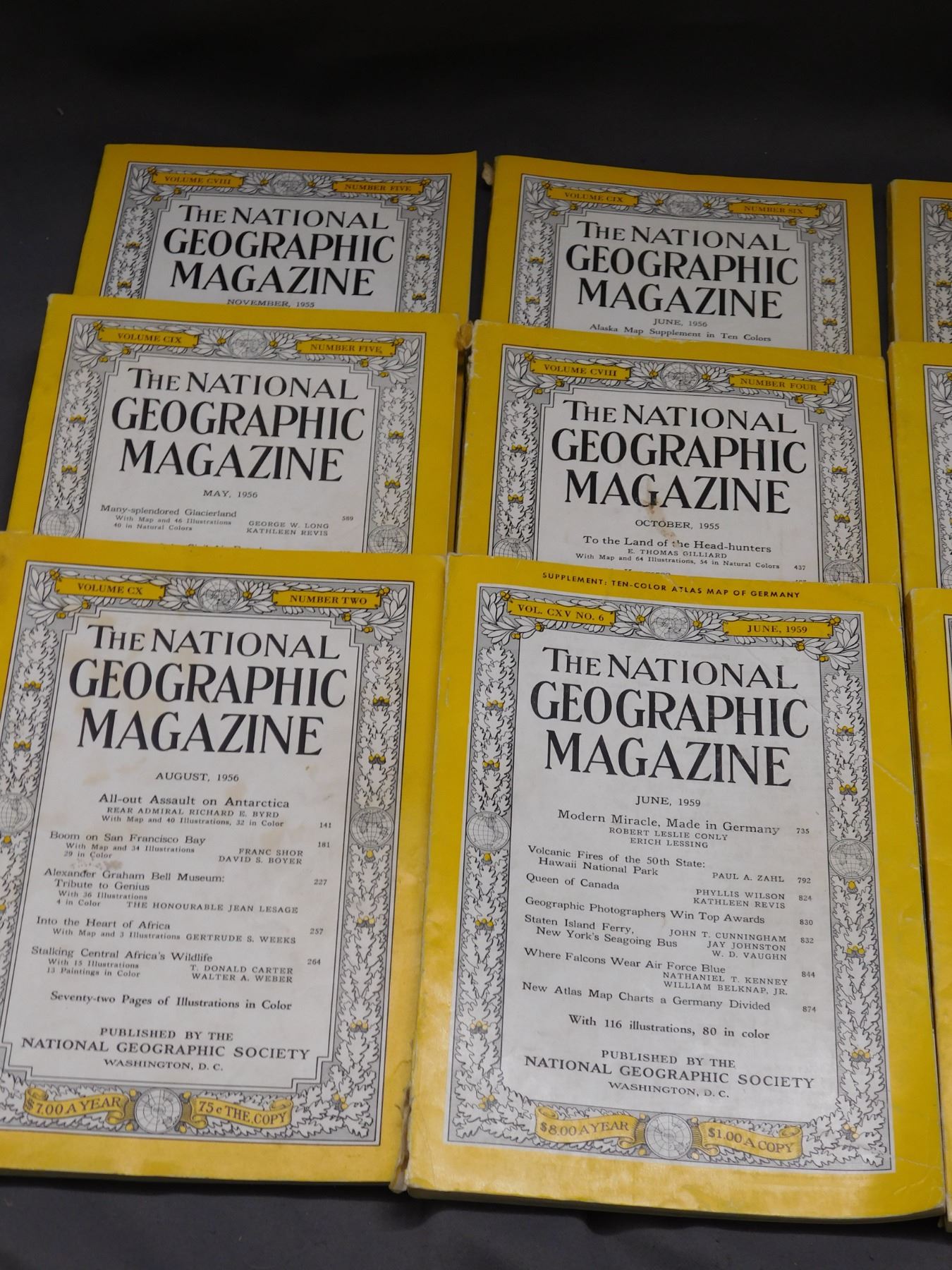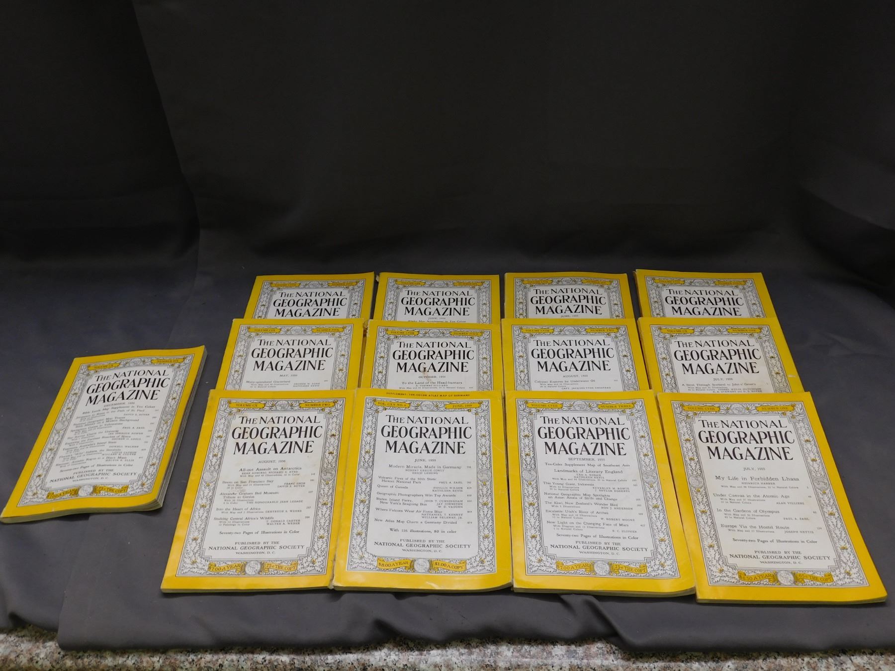 Lot of 13 Mostly 1955, 1956 National Geographic Magazines, One 1959