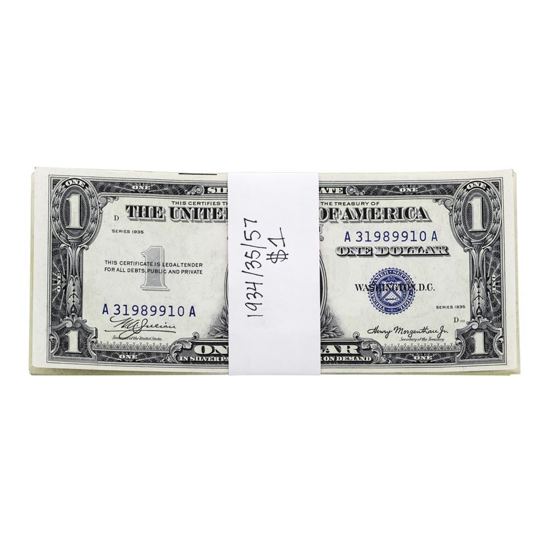 One Lot of (14) 1934/1935/1957 $1 Silver Certificate Notes including: (10) 1935 $1 Silver Certificate Notes, (3) 1957 $1 Silver Certificates, and (1) 1934 $1 Funnyback Silver Certificate Notes.