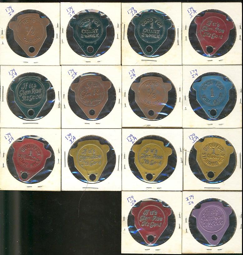 Lot of 14 Dairy tokens, Glen Rae 1/4, 1/2. Should be viewed.