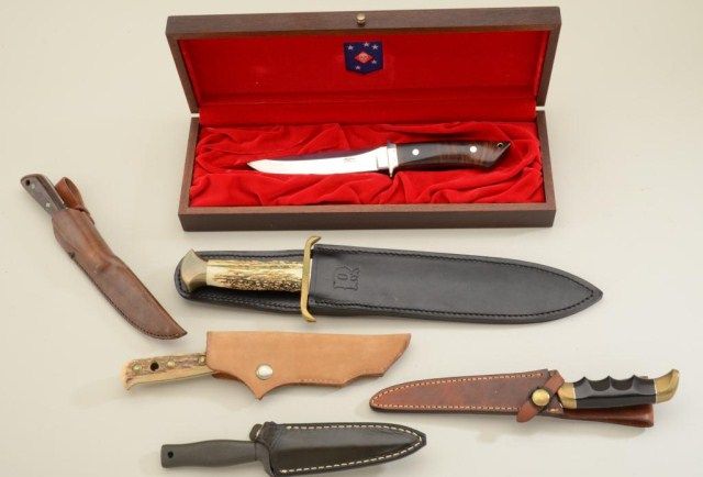 Lot of 14 Hunting knives, Kershaw, Gerber, and others, good to excellent, all used. From the estate of Robert Petersen. Est.: $150-$300.