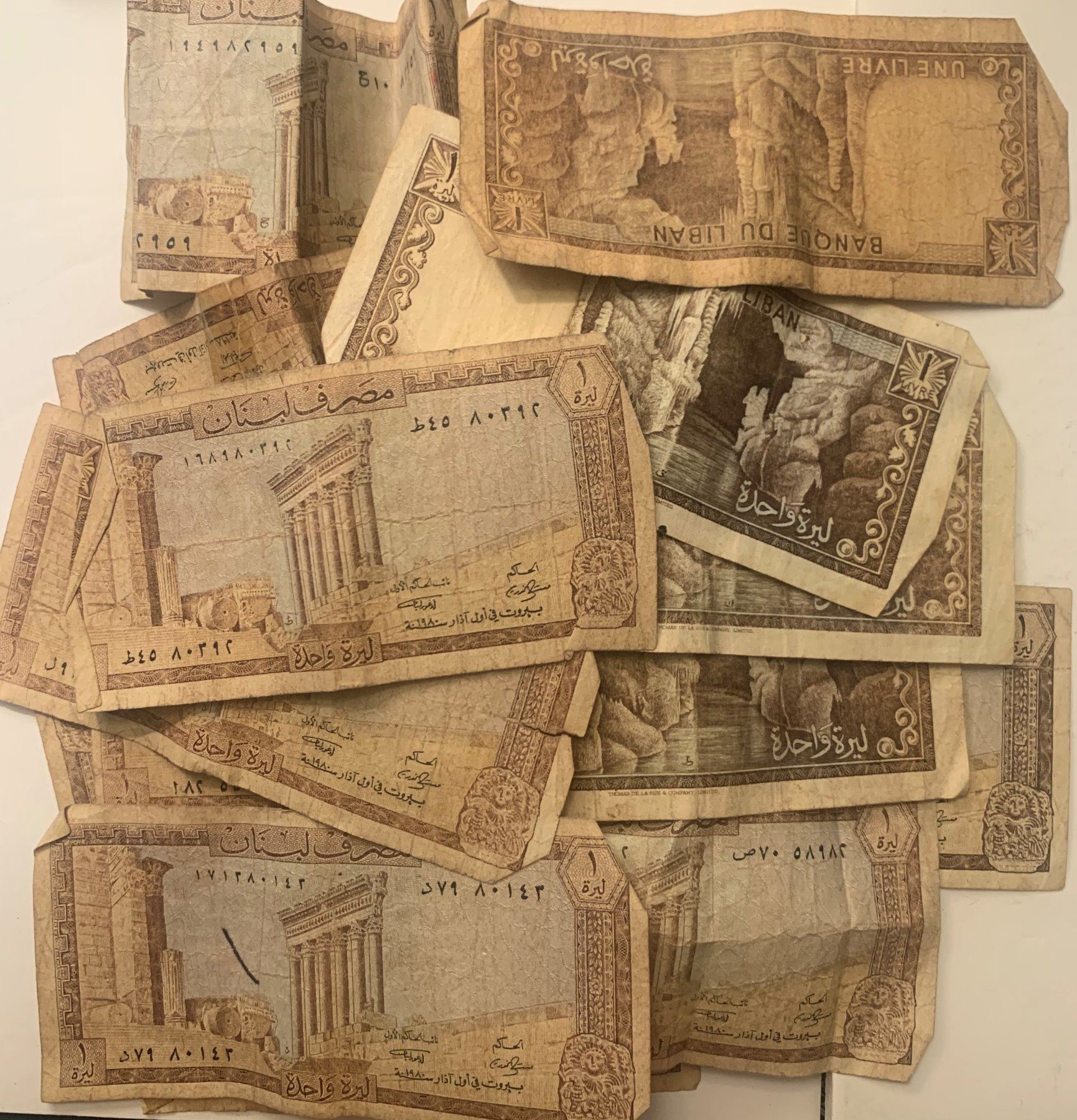 Lot of 14 Lebanon 1 Livres 1980 Circulated