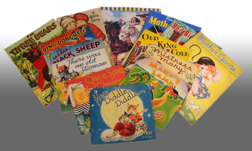 Description Contains "A Childs Story The Angora Twinnies" published in 1919 by the Stecher Litho Co. of Rochester, NY. Has numerous color illustrations. Some splitting at binding and some tape repair. Also includes 13 other more modern soft cover books. Condition (Very Good - Excellent). Size Largest: 17" T.