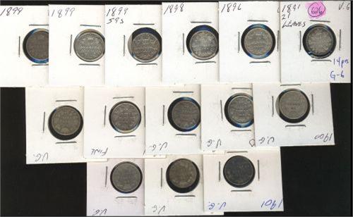 Lot of 14 Victorian pieces including 1891 21L, 1896, 1898, 1899 S x 2, 1899 L, 1900 x 2, 1901 x 6. All Good-6 or better