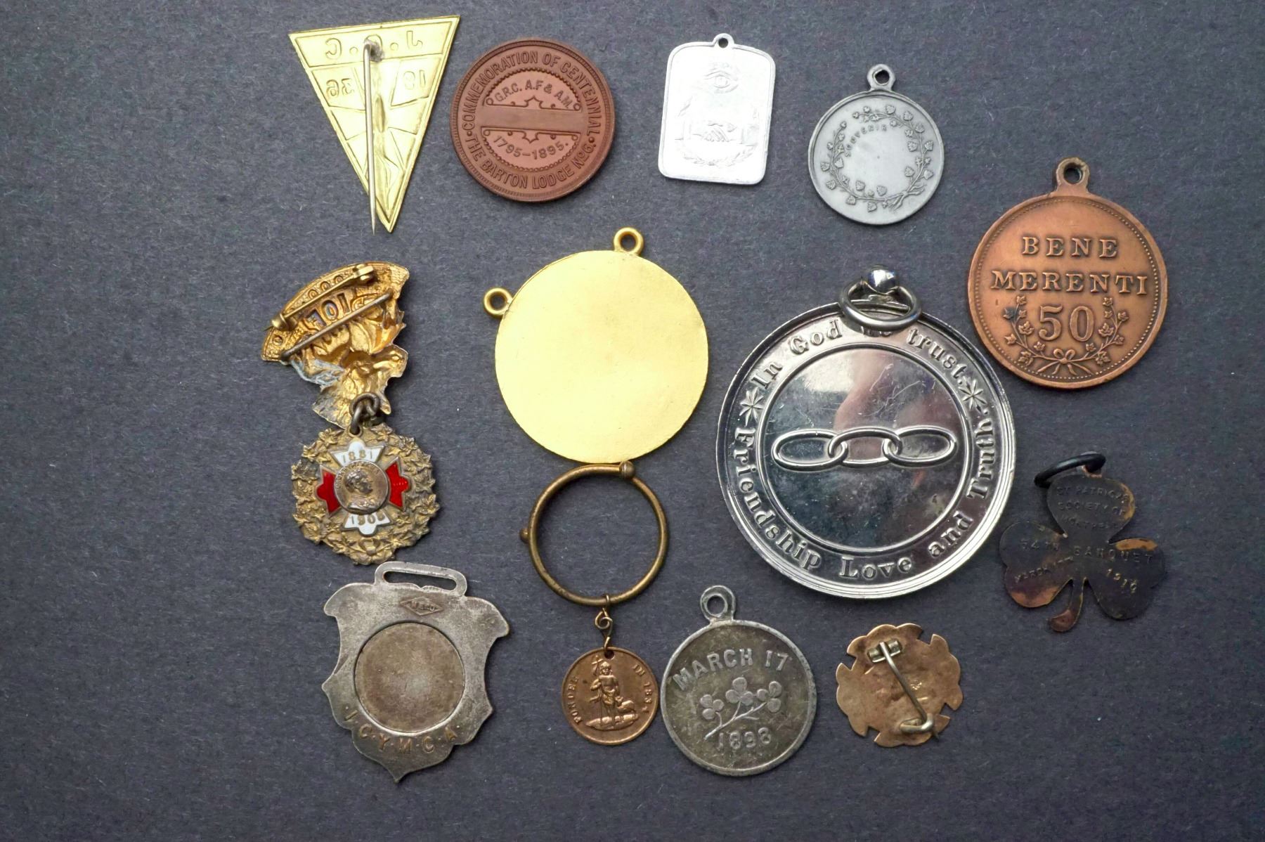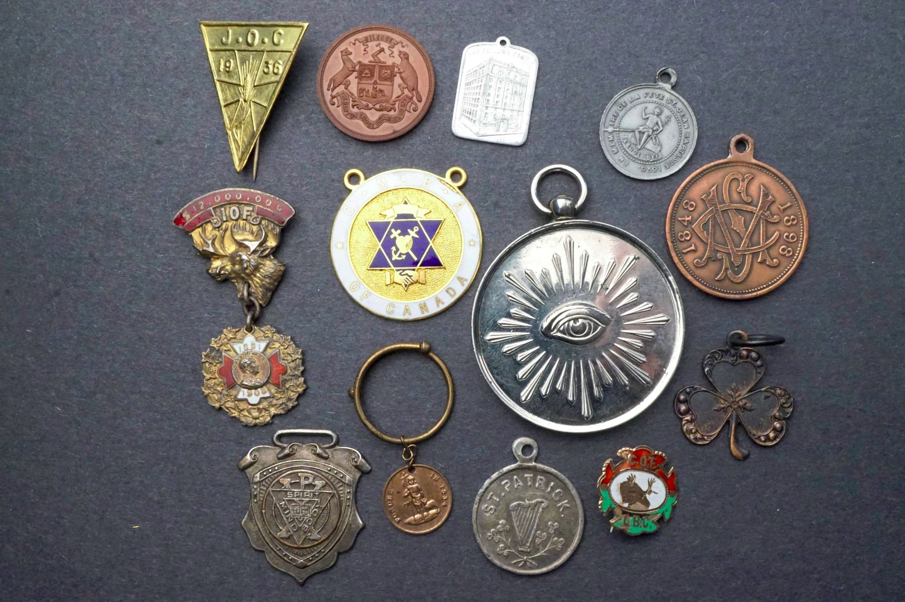 Lot of 14 different Pins and Medals of Fraternal Organizations 19th - 20th Cent,