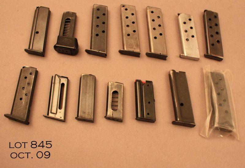 Lot of 14 small cal. magazines, including 3 Mauser HSC mags, a Bernardelli .22 mag, a Manurhin PP mag in 7.65, a Beretta .32 cal mag. and others. Est. $100-$200.