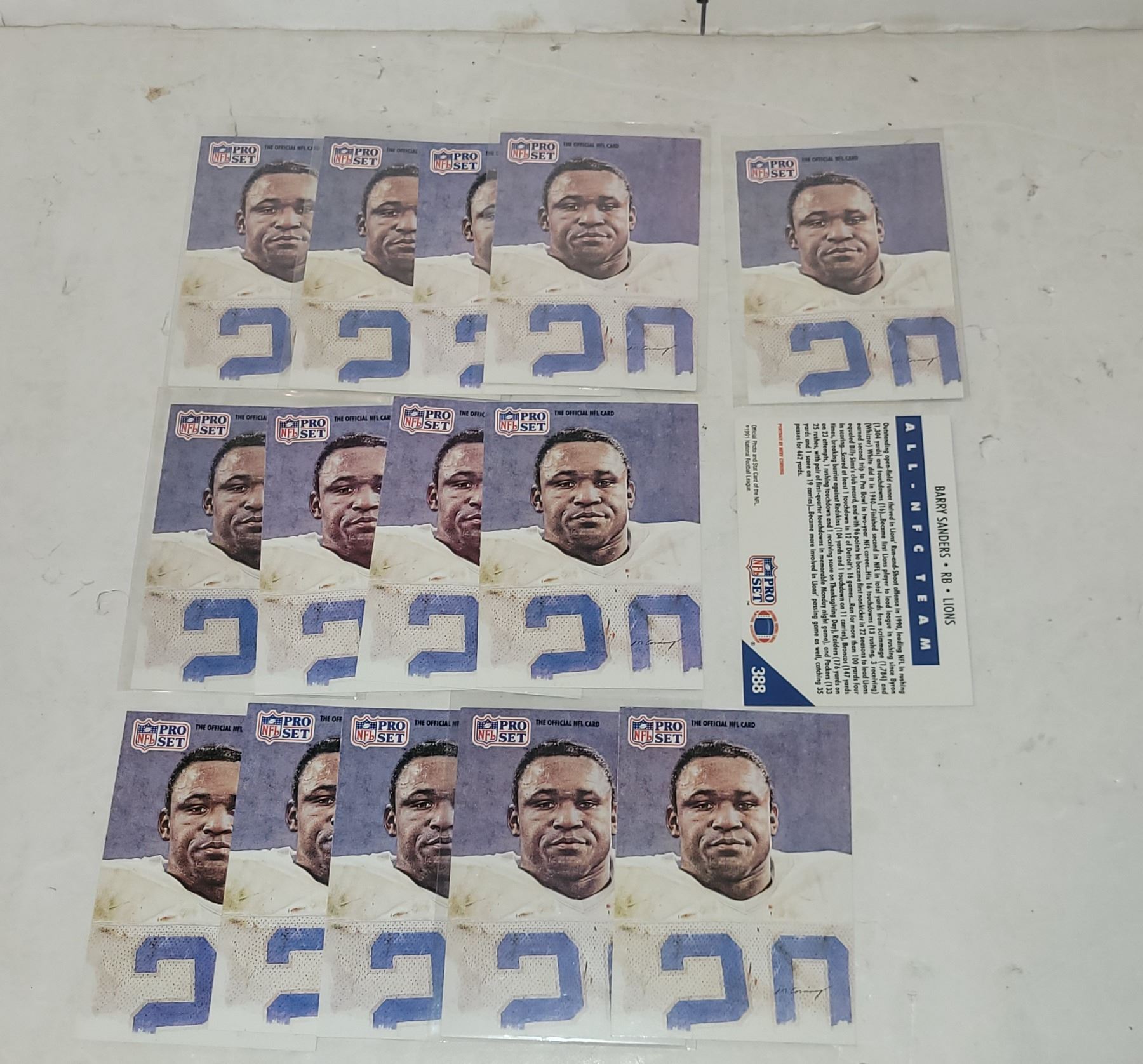 Lot of 15 1991 Barry Sanders Detrioit Lions #388, 2nd Year Cards