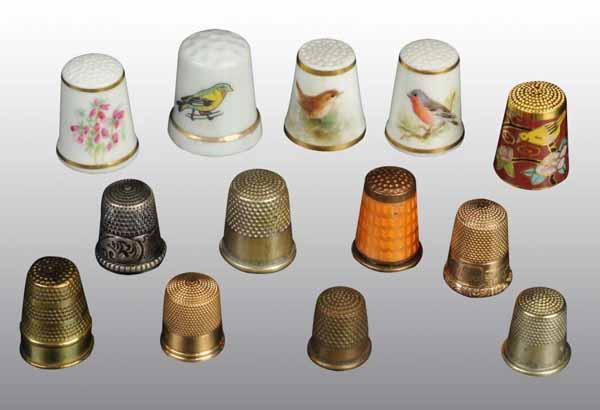 Description Includes one 10K yellow gold, one 14K yellow gold, and four porcelain. One of the porcelain thimbles has a hairline crack. Condition (Excellent).