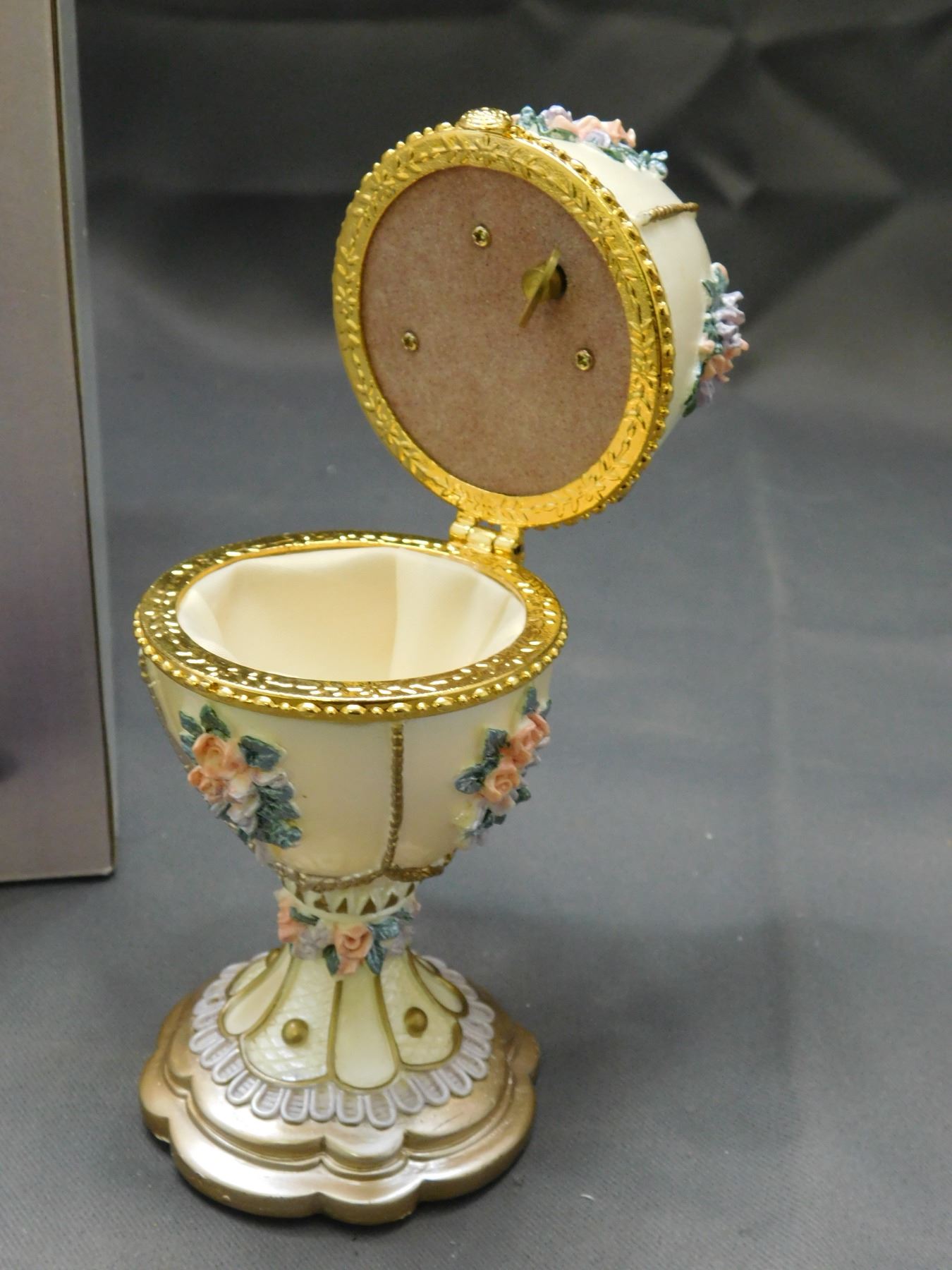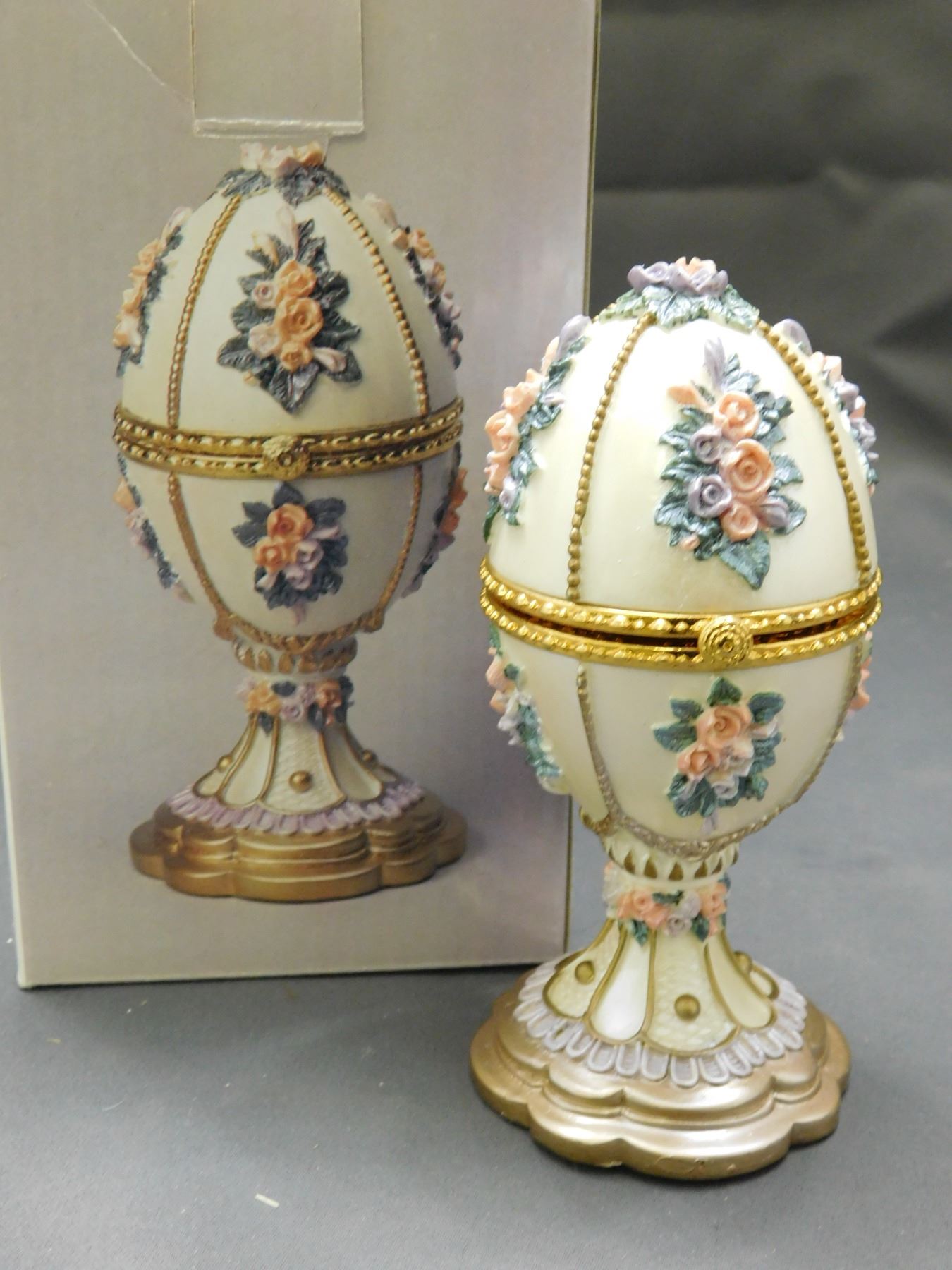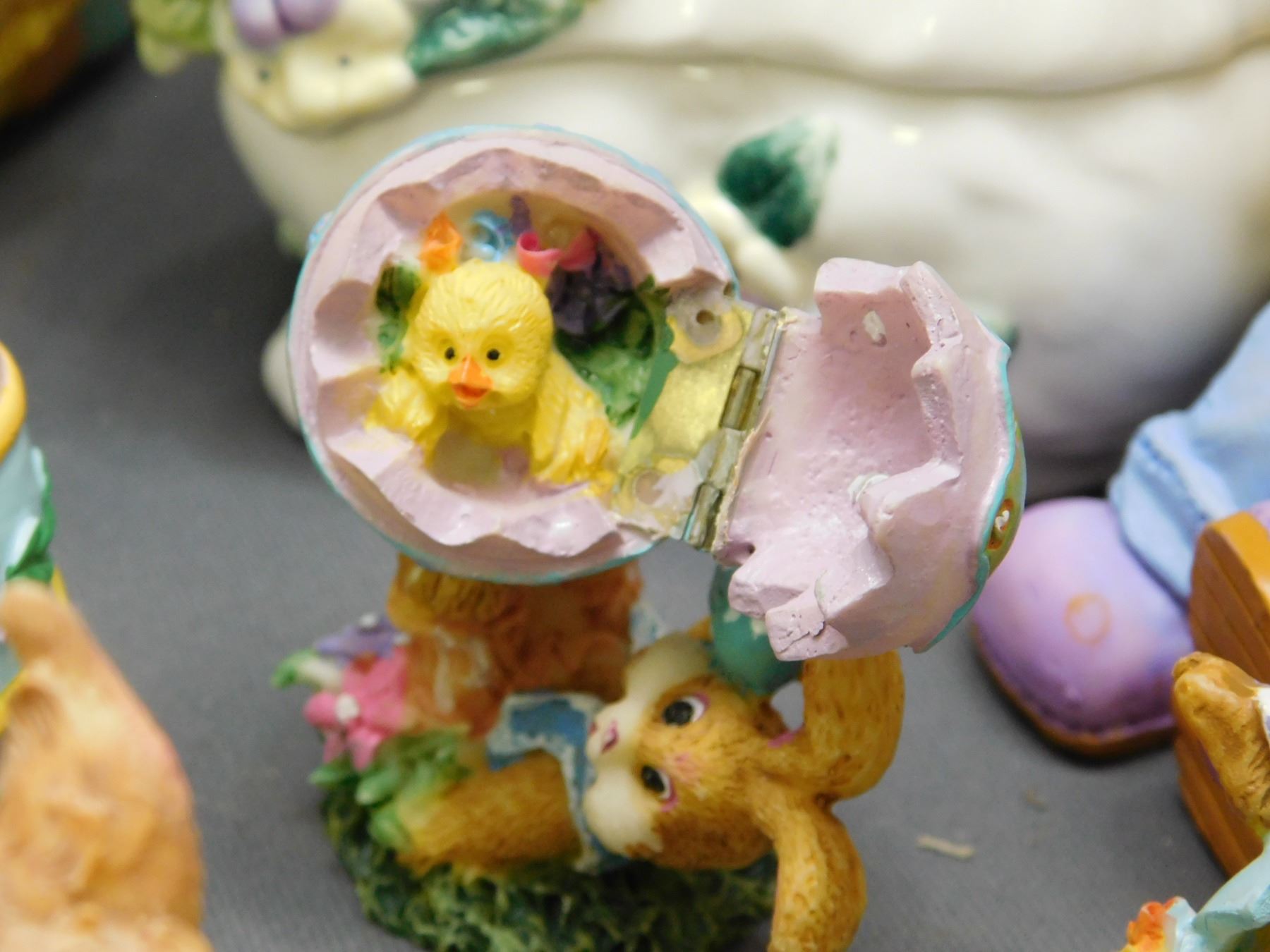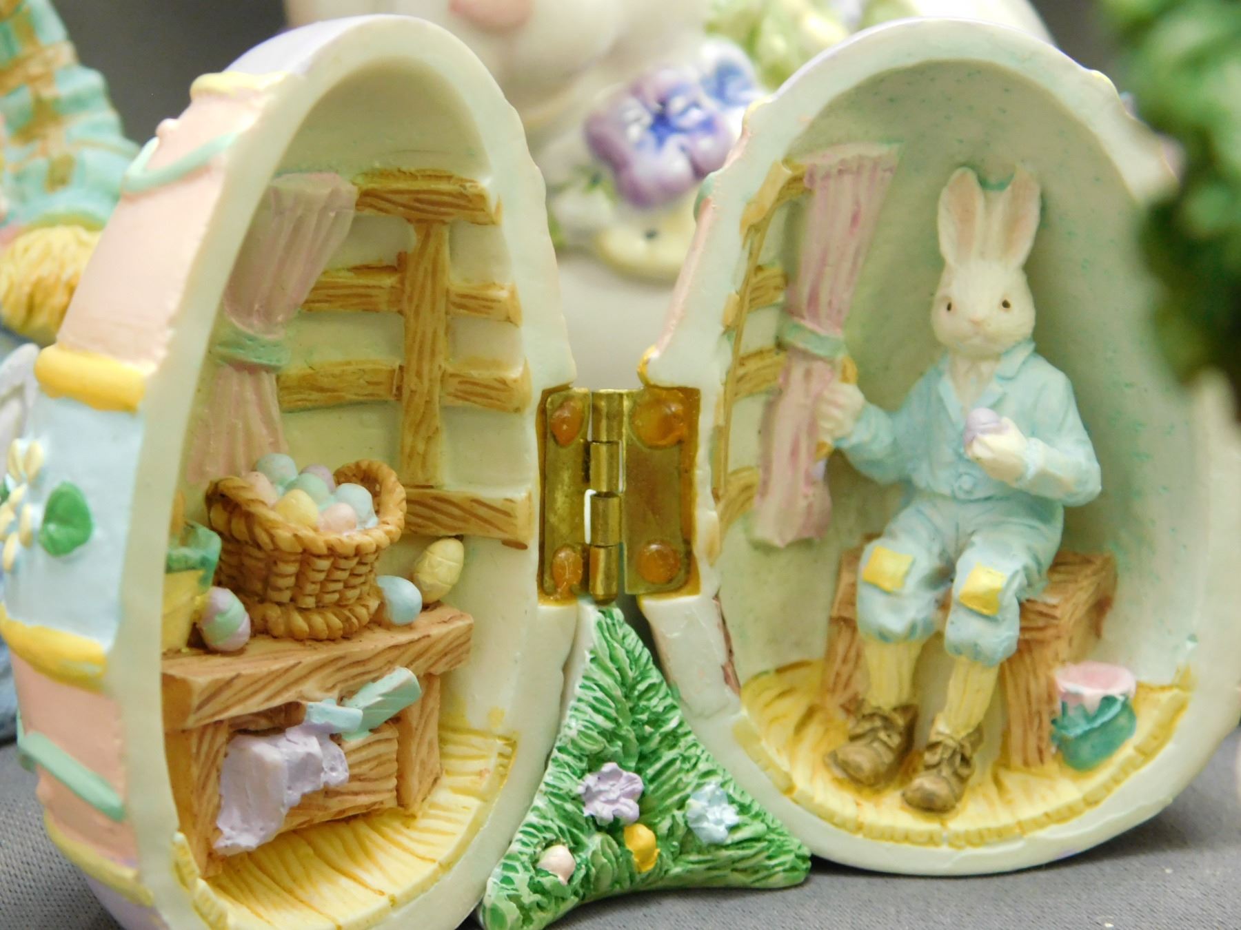 1 ceramic trinket dish and 1 sequin beaded rabbit. music box egg is by SANKYO