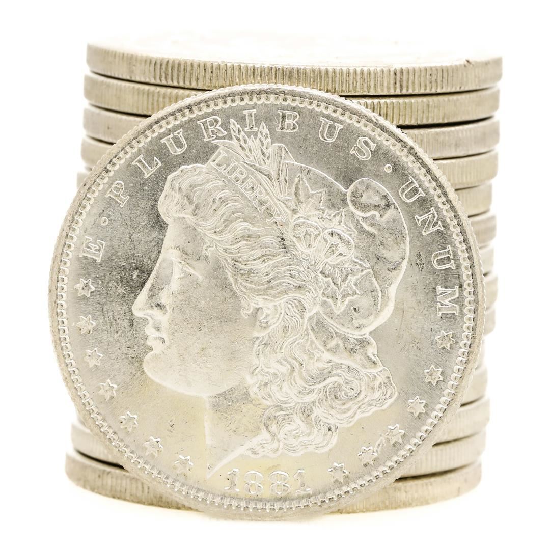 Lot of (15) Brilliant Uncirculated 1881-S $1 Morgan Silver Dollar Coins