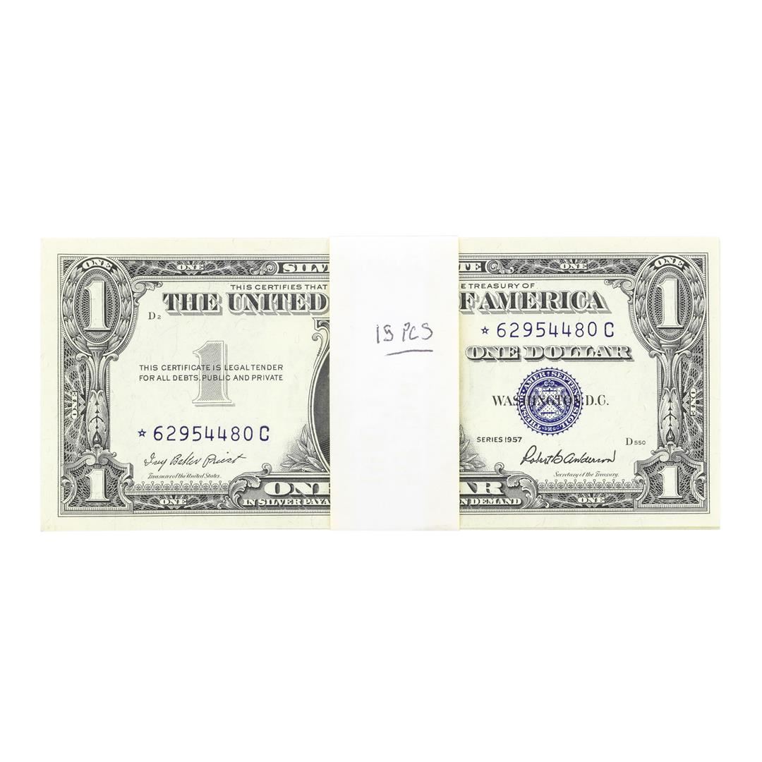 Lot of (15) Consecutive 1957 $1 Silver Certificate STAR Notes Uncirculated