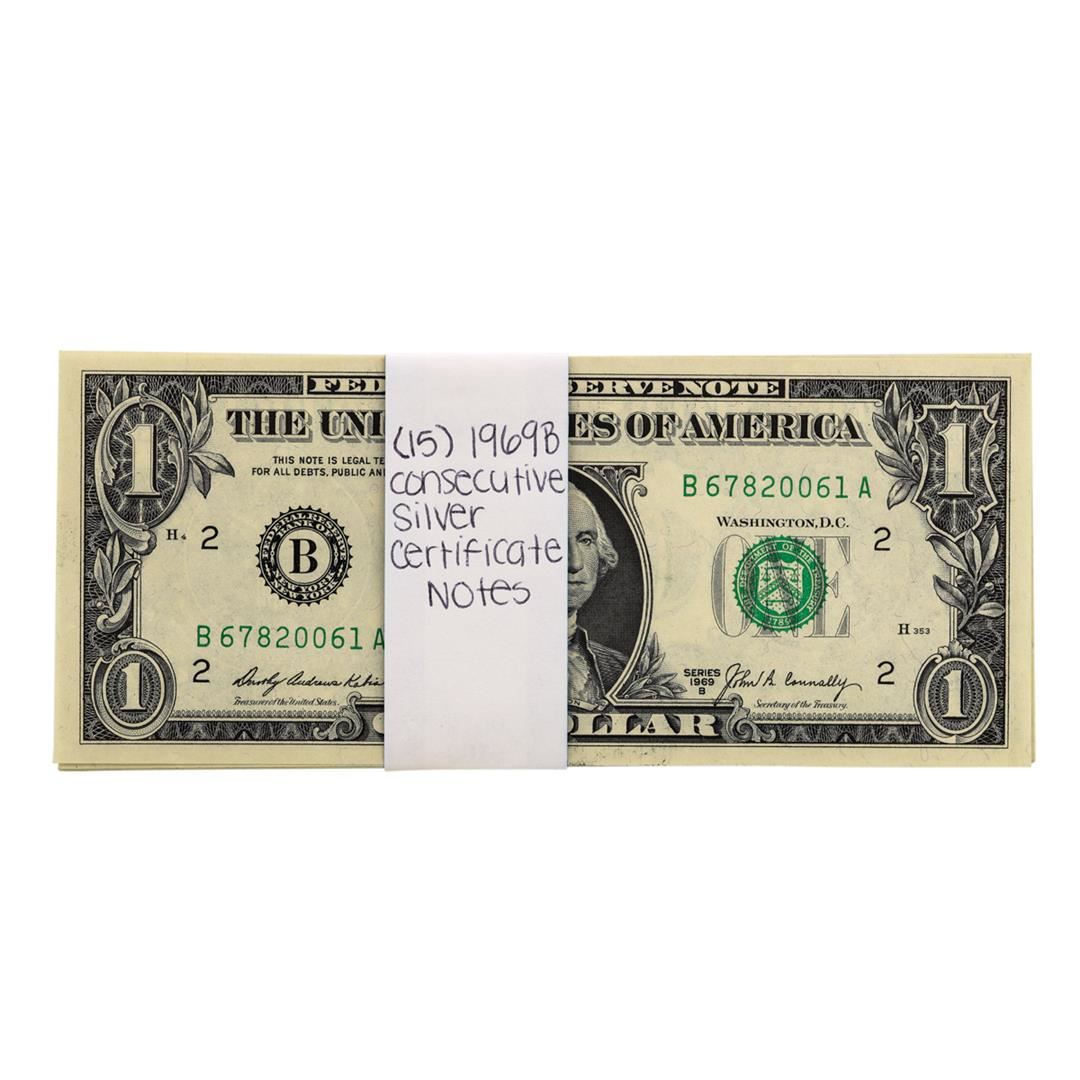 One Lot of (15) Consecutive 1969B $1 Federal Reserve Notes.