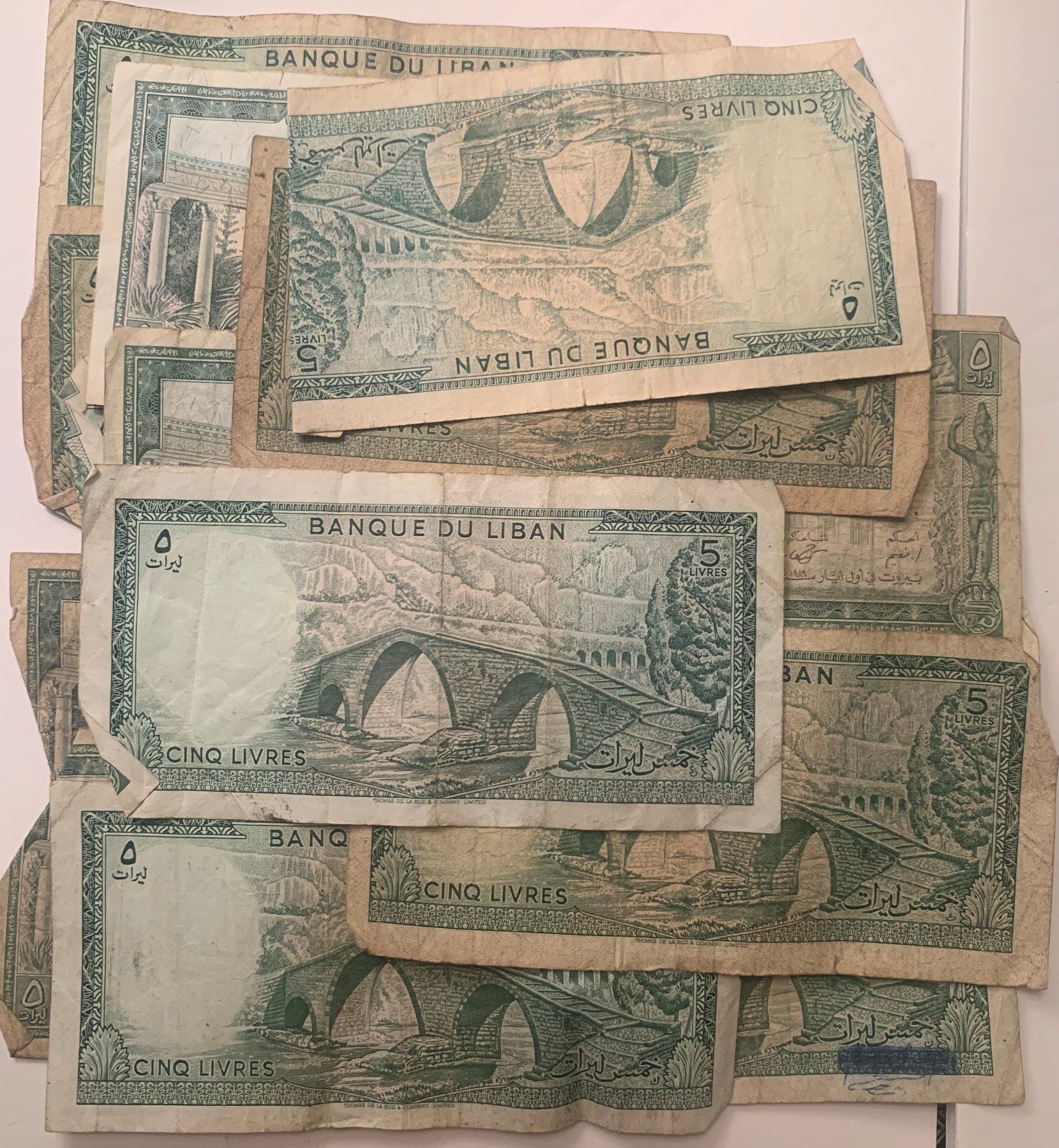 Lot of 15 Lebanon 5 Livres 1986 Circulated