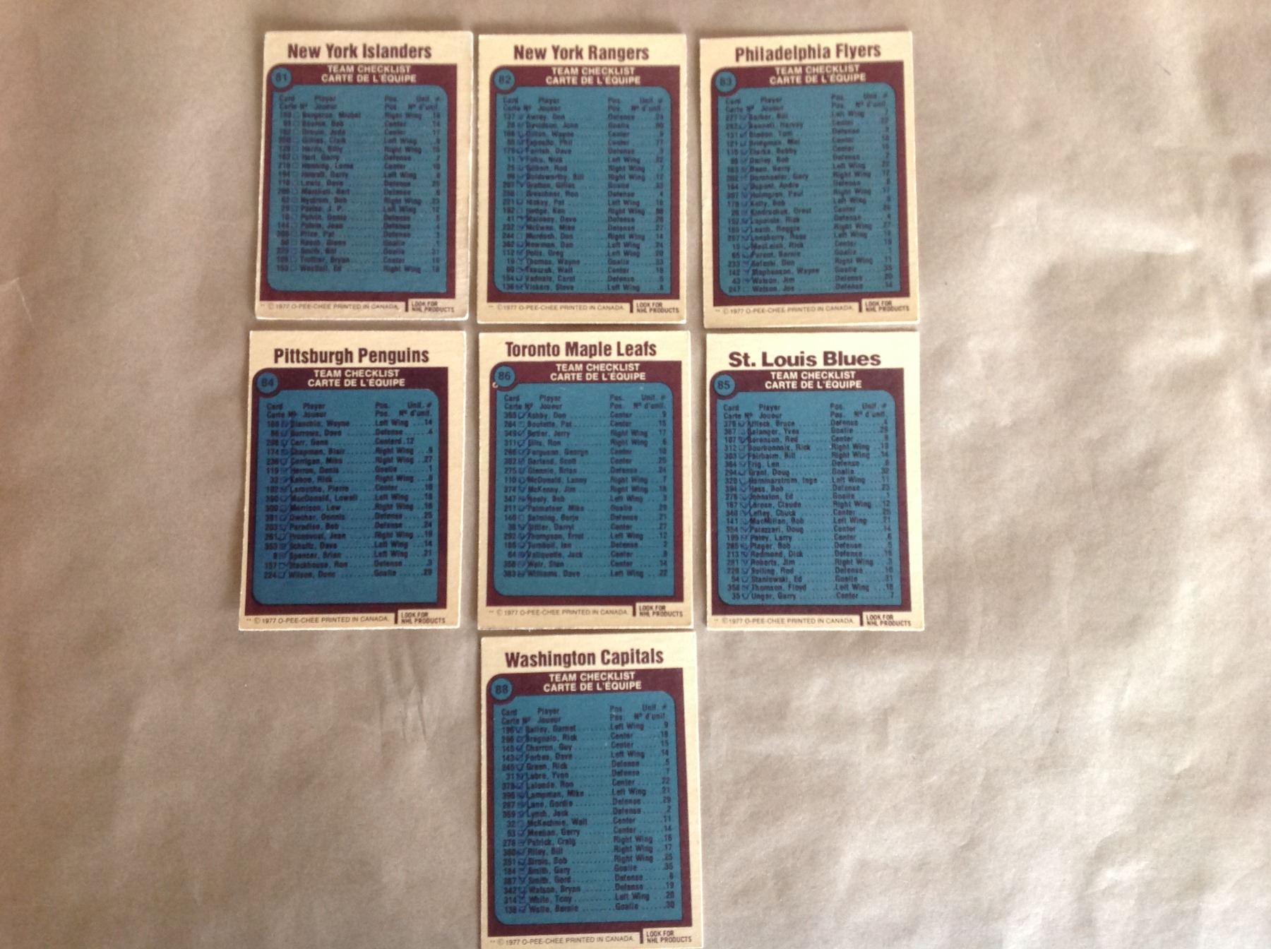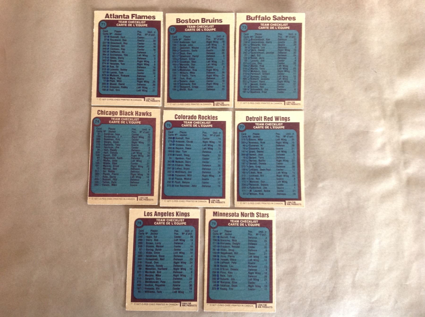 1977 Mixed Team Check List Hockey Cards 71-74,76-79, 81-86 & 89