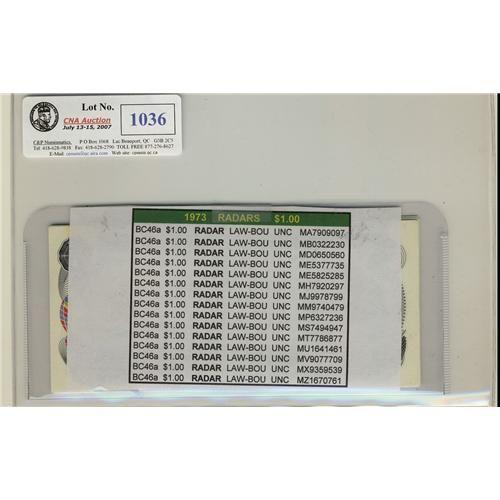 Lot of 15 "RADAR" notes. BC-46a 1973 $1 Lawson-Bouey, all DIFFERENT PREFIX notes. Includes MA7909097