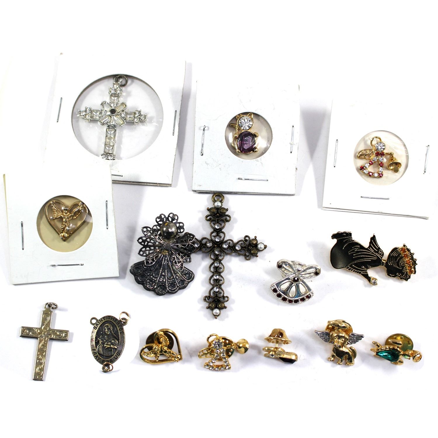 Lot of 15x Assorted Pins and Charms of Religious Symbols. All assorted. Please see picture for more details.