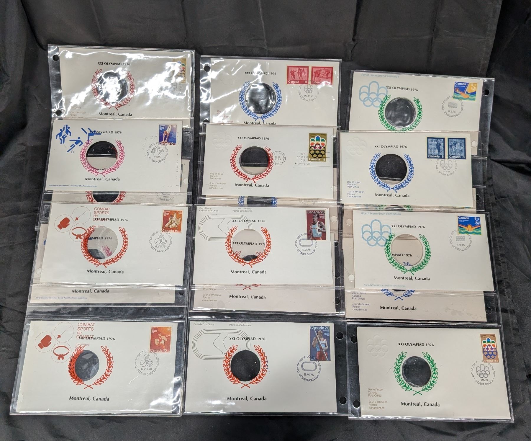 Lot of 16 1976 Montreal Olympic Games First Day Covers. Missing the Silver $5 & $10 coins.