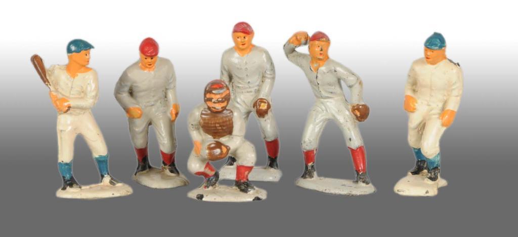 Includes 13 gray and red and 3 white and blue players. Various batters, catchers, fielders and pitchers. Some chipping, especially to bases. Condition (Good - Excellent). Size All: 3" T.