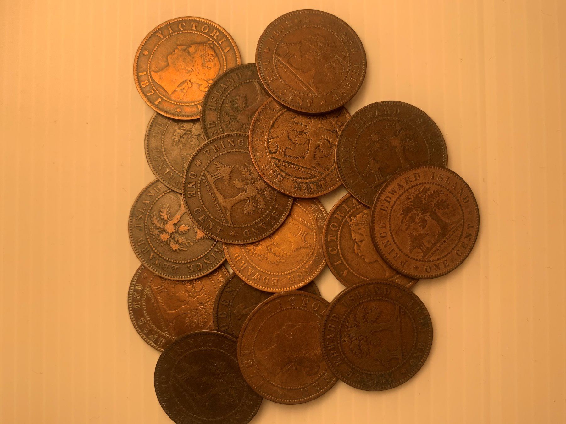 Lot of 16 Canada One Cent 1 Penny Prince Edward Island Queen Victoria Large cent